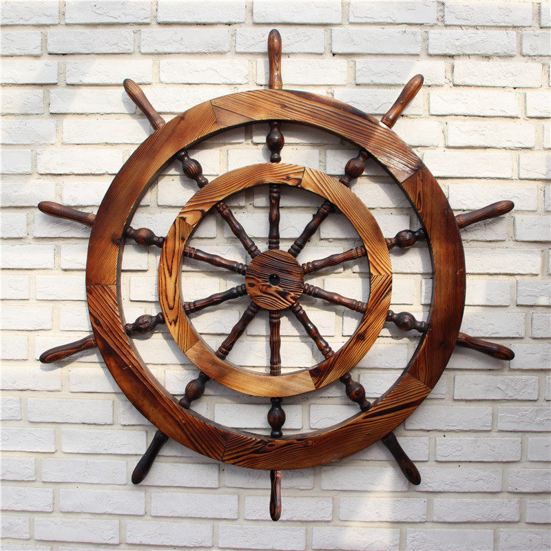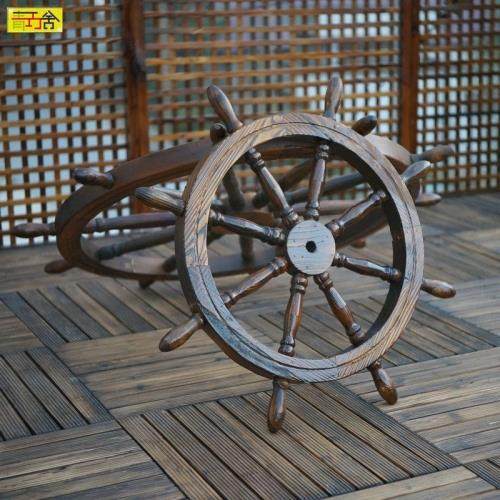 📚 实木复古船舵酒吧咖啡厅墙饰装饰品挂件家居仿古怀旧车轮挂饰