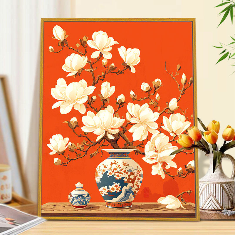 📚 【白玉兰】diy数字油画成人花卉手绘治愈油彩丙烯填充解压装饰画