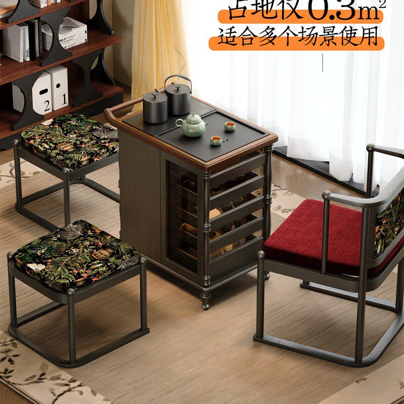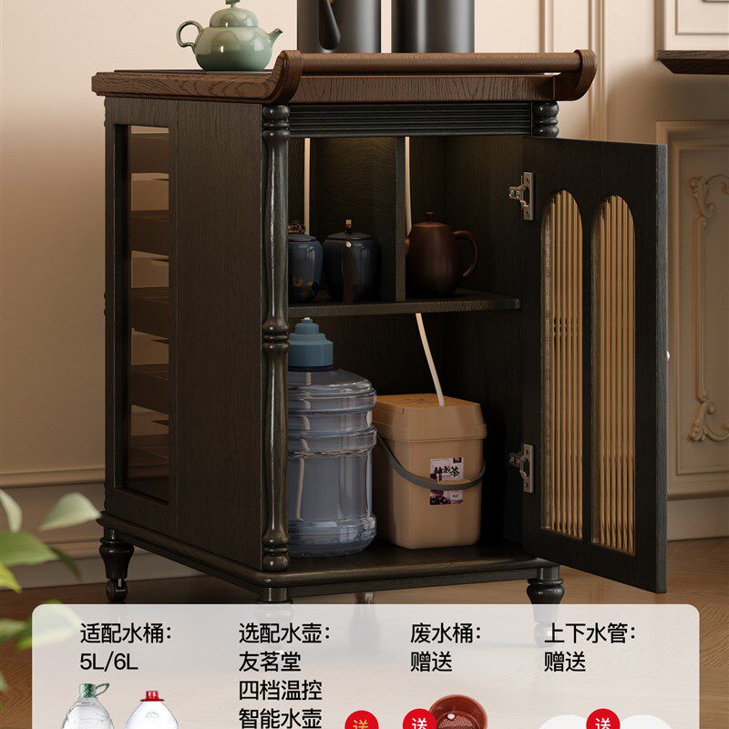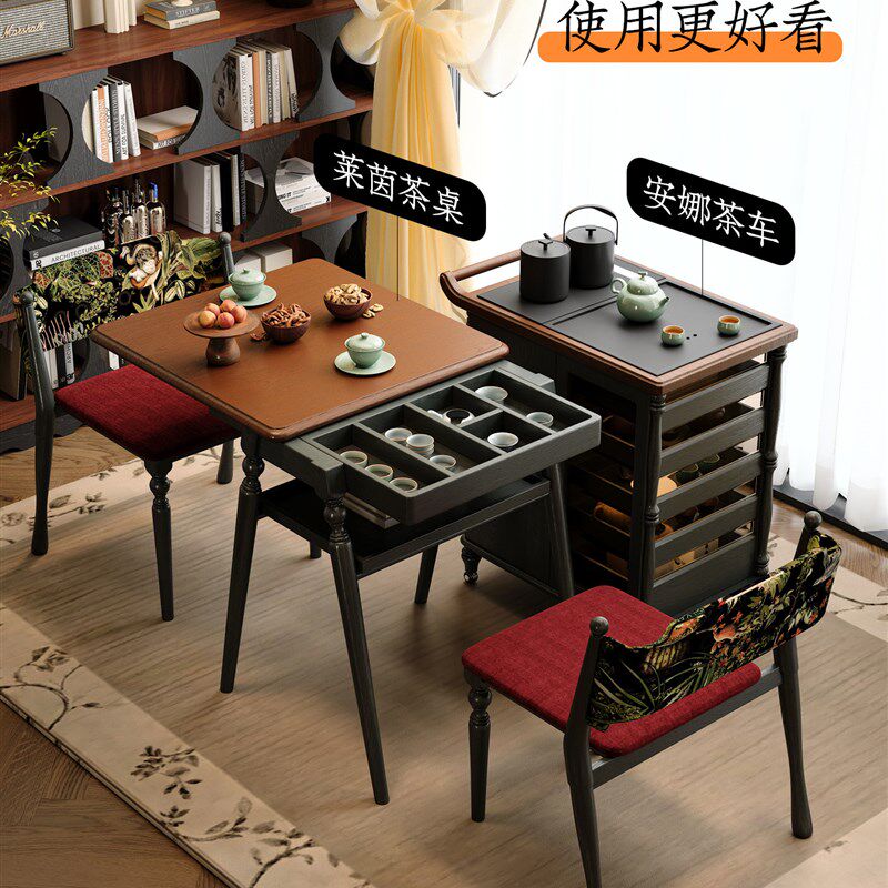 📚 朝朝木木 安娜法式覆古可移动茶桌茶具展示柜实木煮茶台茶边柜