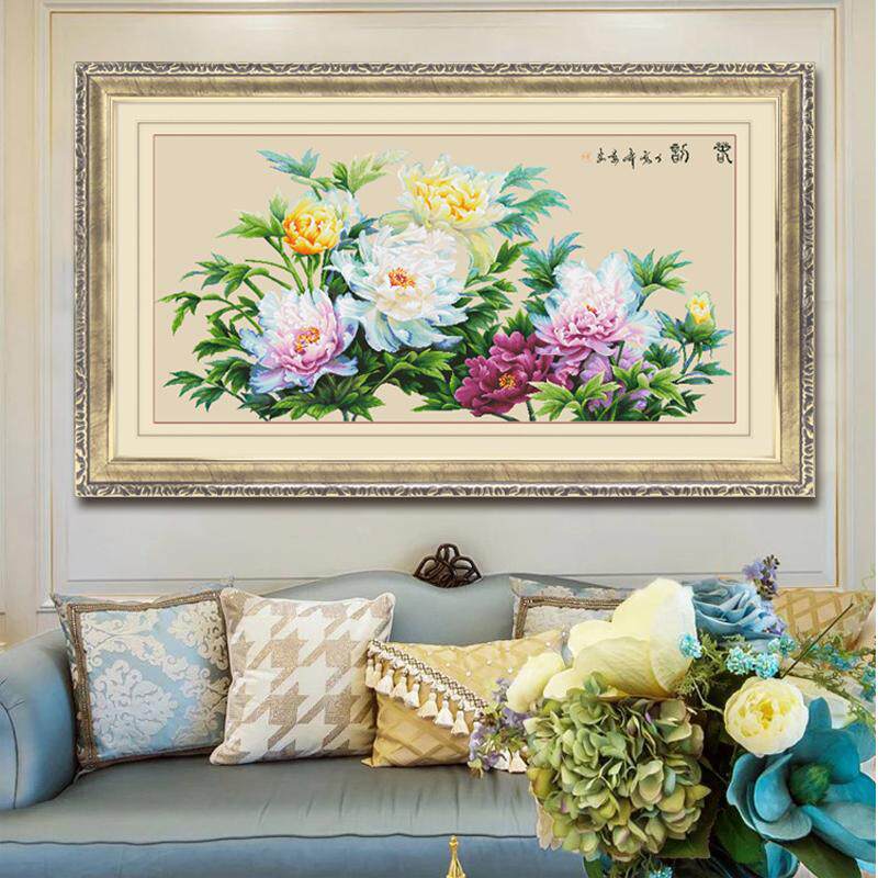 📚 香韵牡丹ABV老三十字绣纯棉绣线精准印花大幅花卉国花冰雪牡丹花