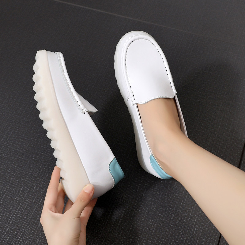📚 真皮护士鞋女软底透气不累脚平底牛筋底防臭防滑内增高医院工作鞋