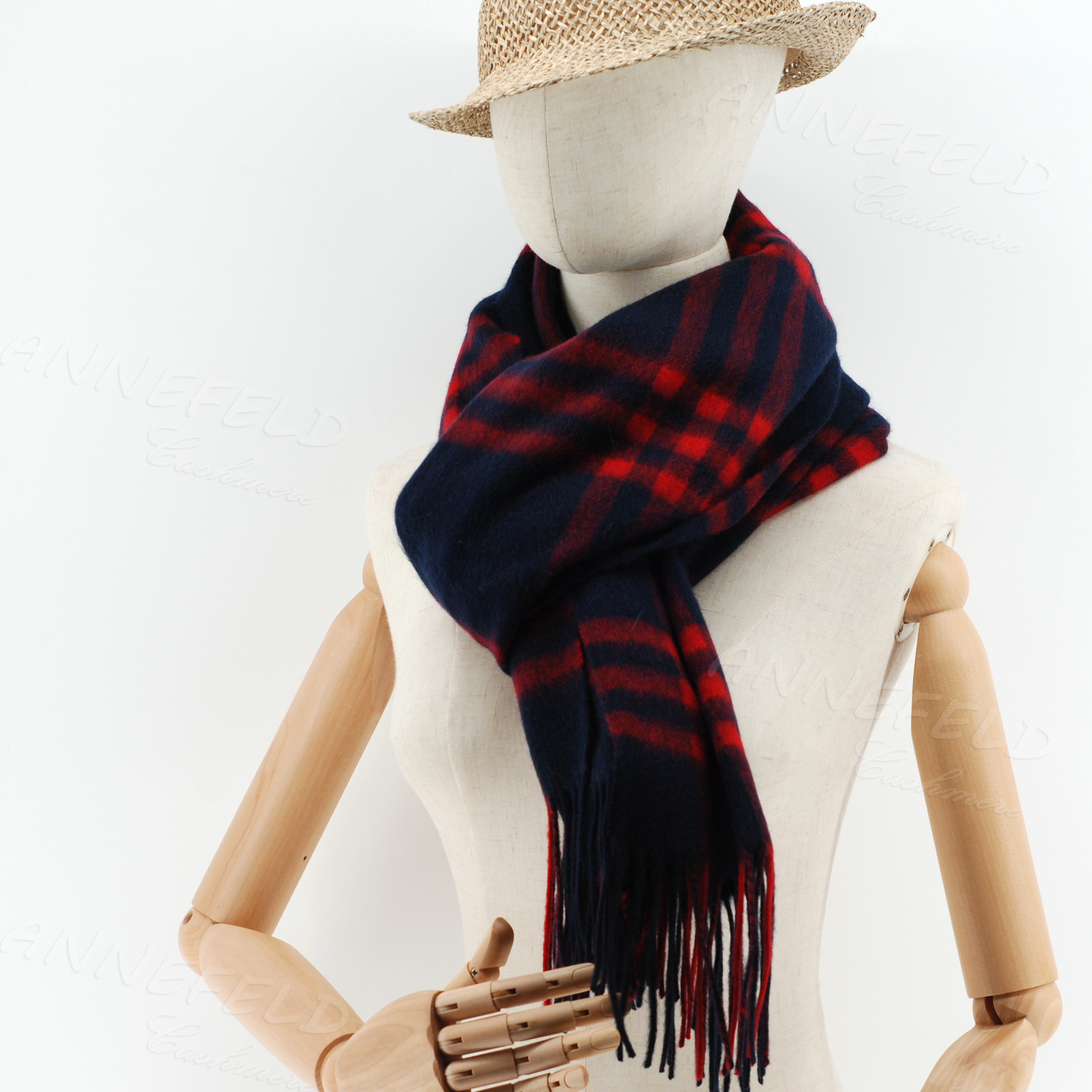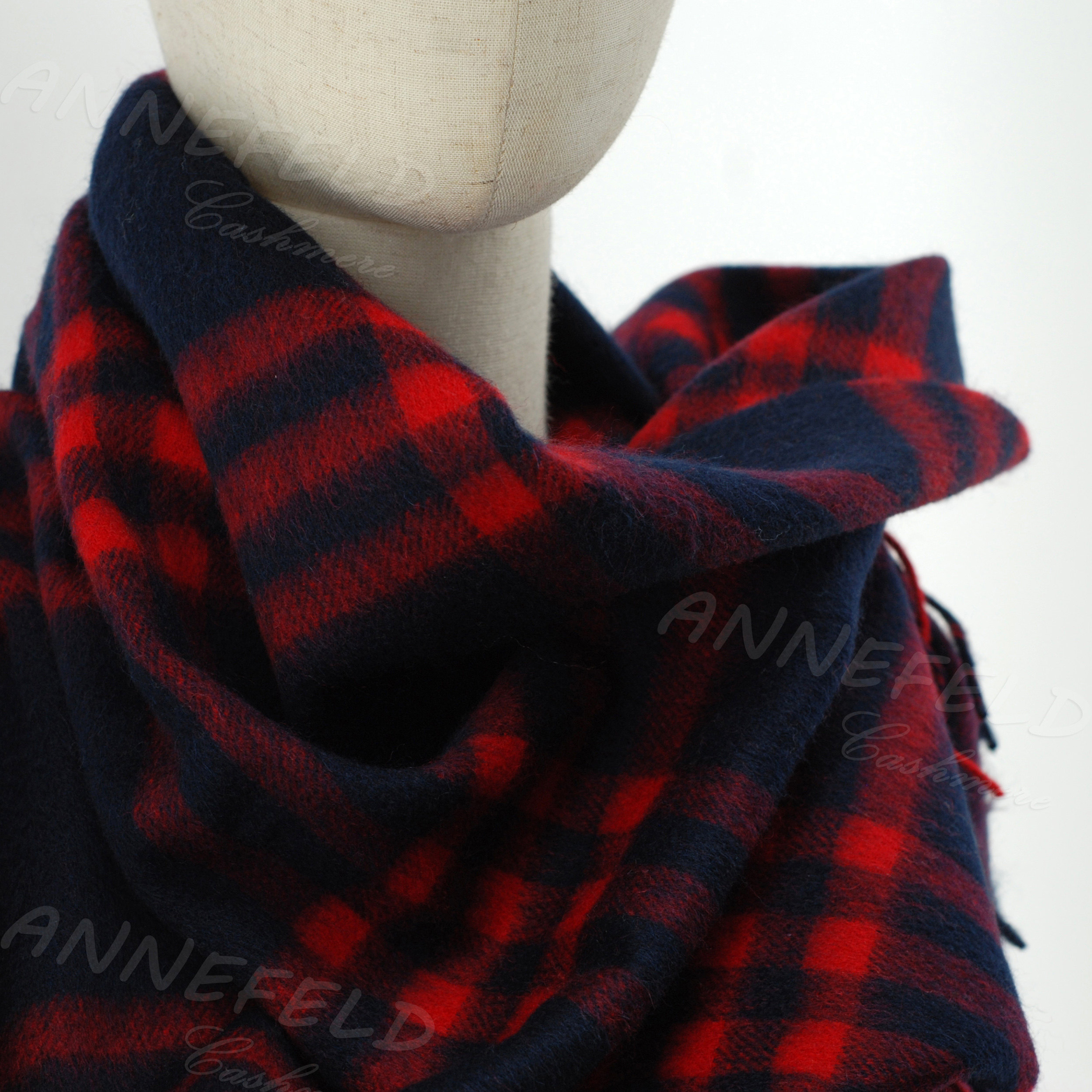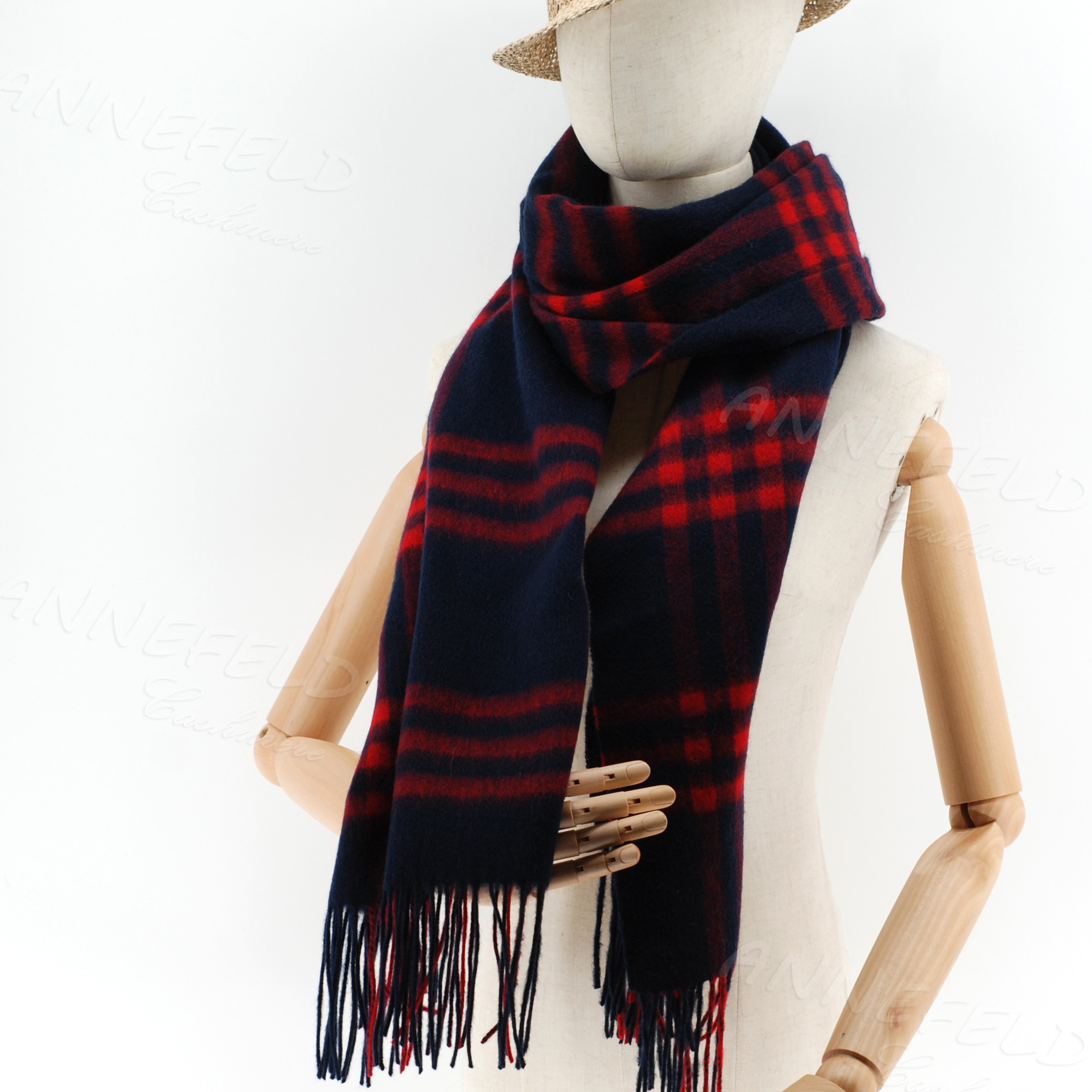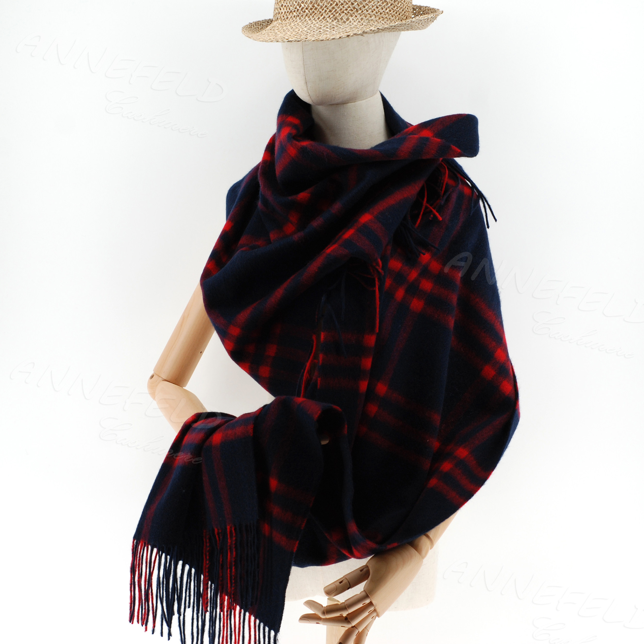 📚 日单新款正品 羊毛羊绒混纺大围巾披肩 黑蓝红格