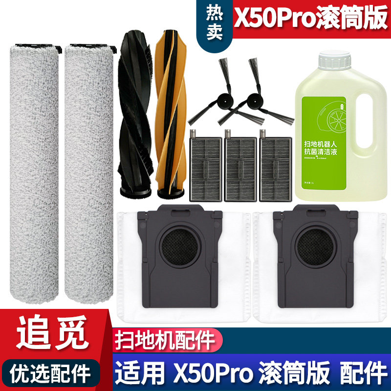 📚 适配追觅扫地机X50PRO滚筒版耗材配件边刷滤网滚刷清洁液滚筒拖布
