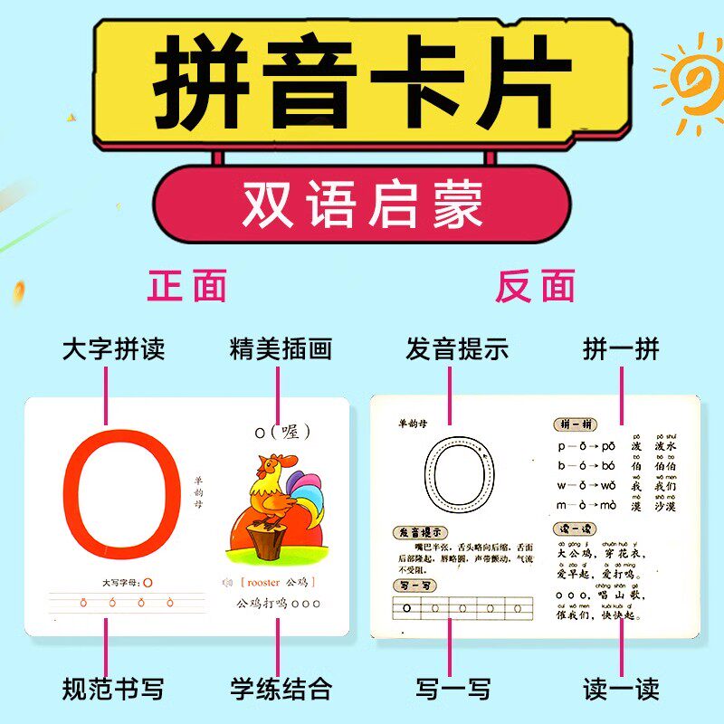 📚 拼音卡片幼小衔接学习教材神器儿童启蒙认知早教书一年级上册汉语字母拼音拼读训练幼儿园大班中班声母韵母字母表入学准备一日一练