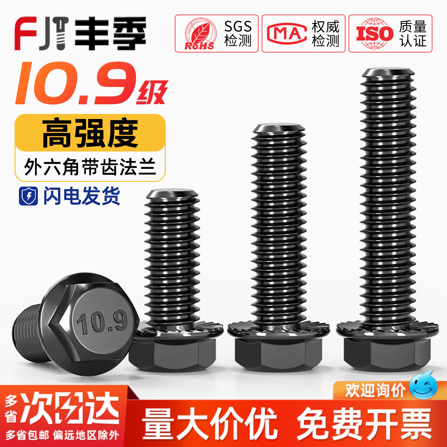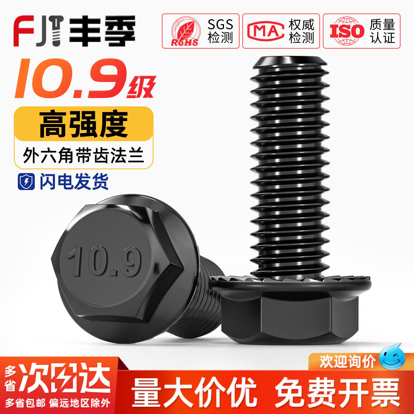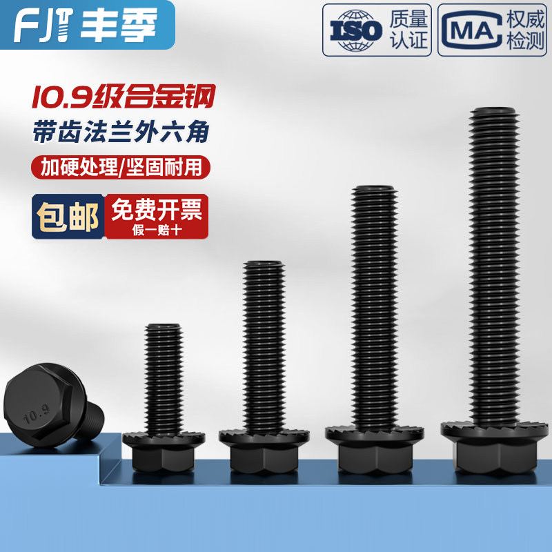 📚 国标10.9级高强度法兰面外六角螺栓带垫防滑螺丝M4M5M6M8M10M12mm
