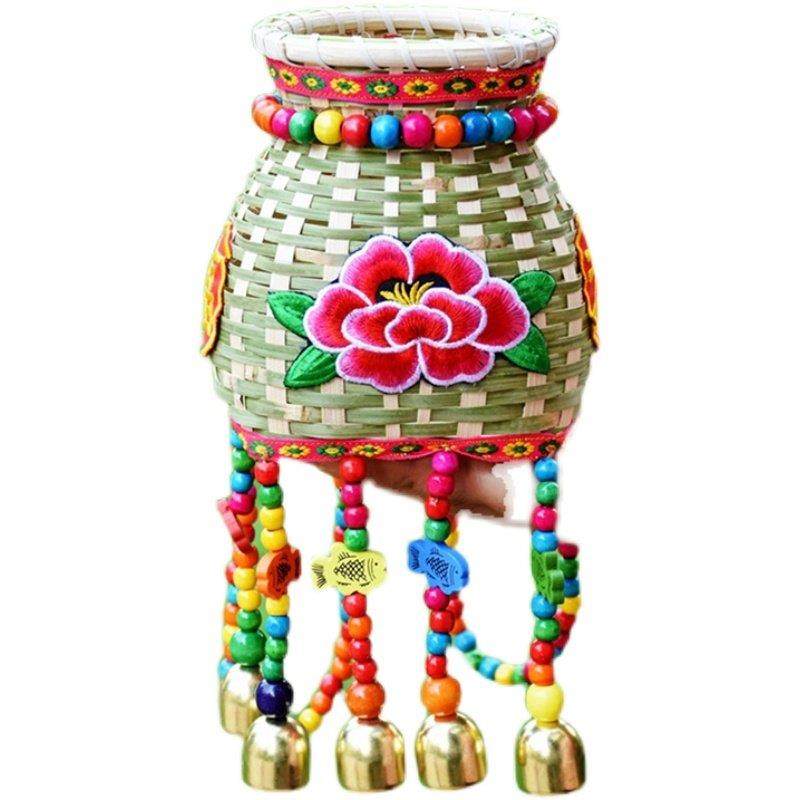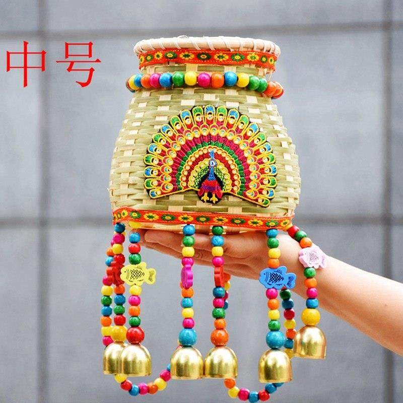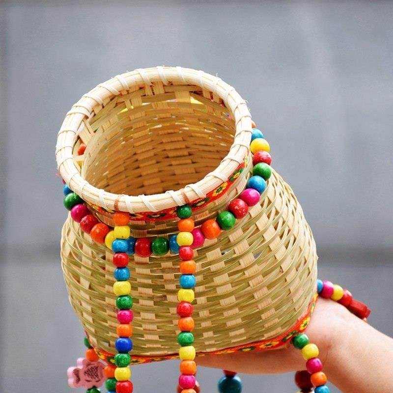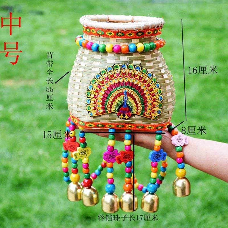 📚 民族风新款儿童拍照手工竹编小背篓幼儿园舞蹈游戏道具儿童房装饰