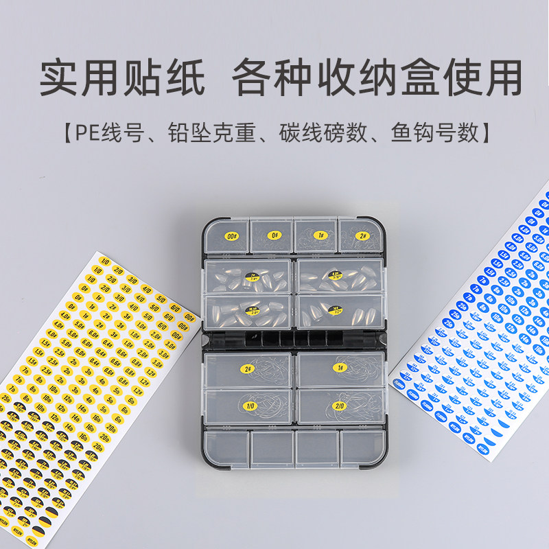 📚 路亚专用不干胶标识贴纸 PE线铅坠克重碳线鱼钩号数收纳盒小配件