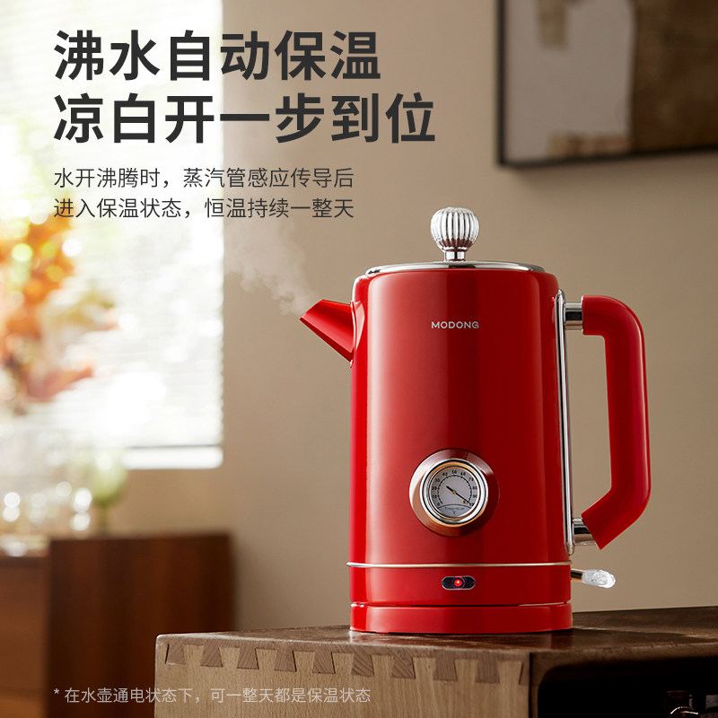 📚 摩动电热水壶家用复古烧水壶316不锈钢保温一体大容量电烧开水壶