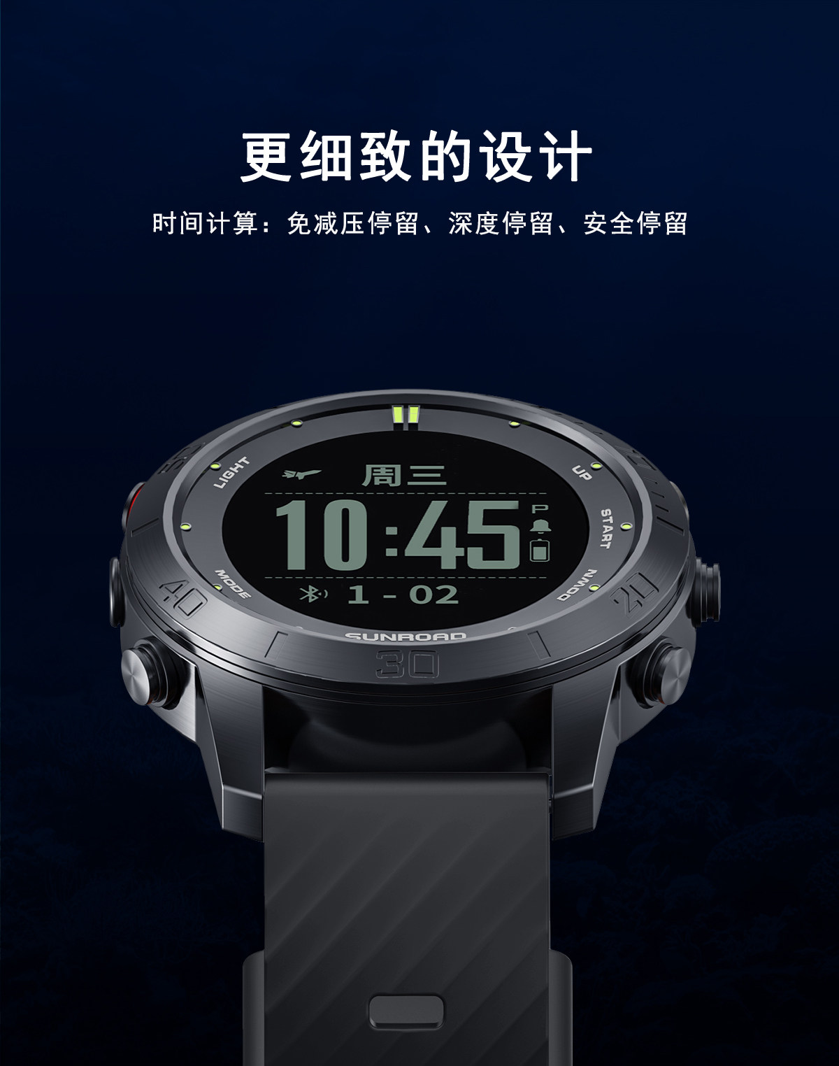 📚 多功能潜水表100m 防水海拔高度水温指南针腕表运动手表中文显示