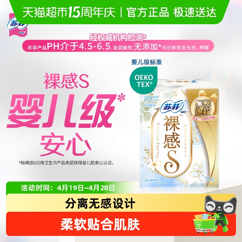 📚 苏菲卫生巾裸感S极上夜用姨妈巾290/250/230mm【正品】