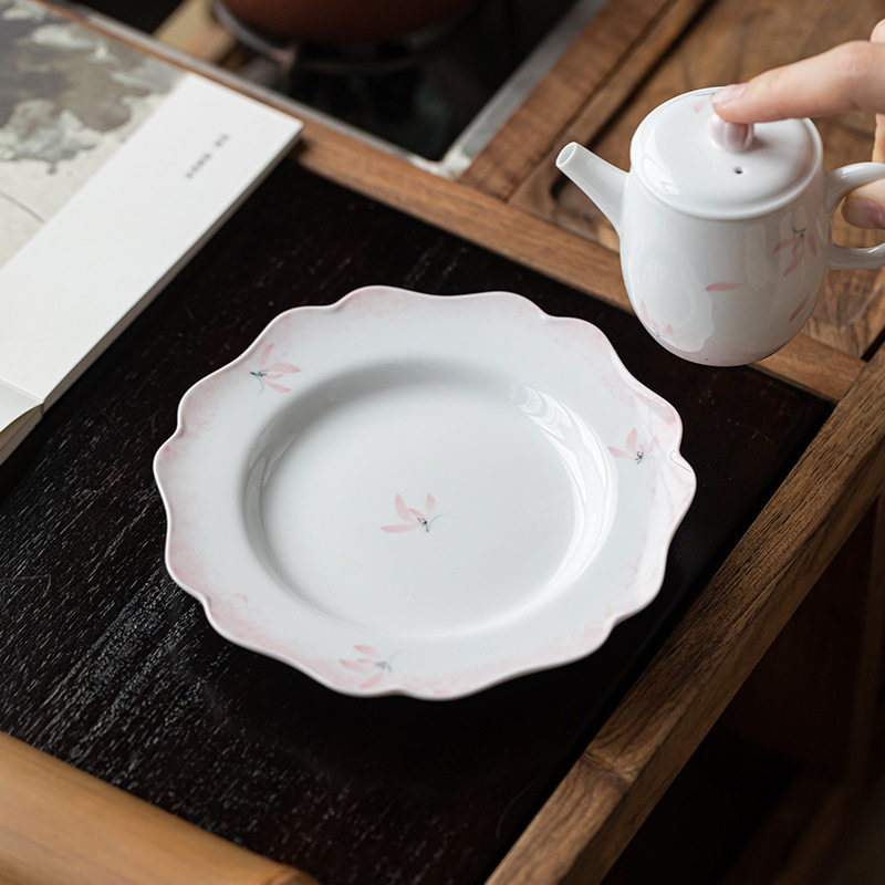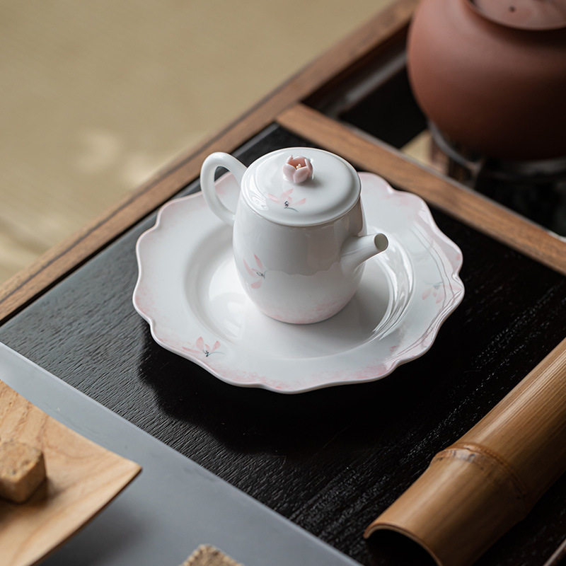 📚 明泉茶斋手绘兰花壶承干泡盘中式家用陶瓷茶壶托盘茶台茶道配件