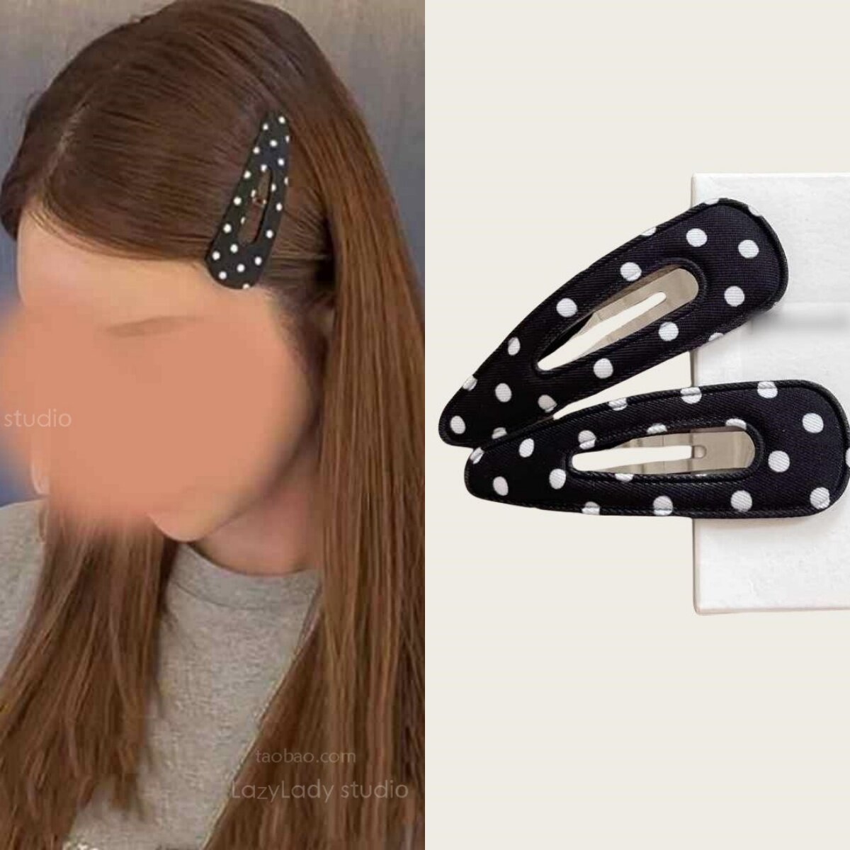 📚 一对装~韩国博主同款黑白波点发夹侧边刘海夹子对夹发饰