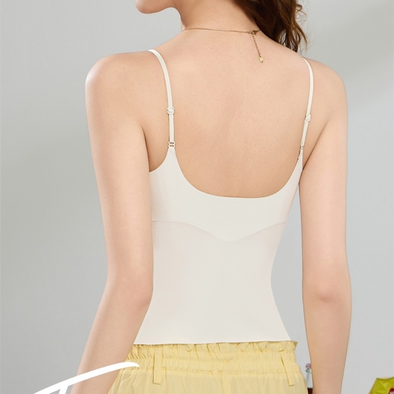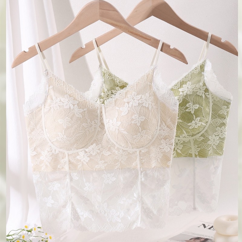 📚 小胸薄杯法式蕾丝提花吊带美背内搭抹胸一体固定杯文胸打底内衣女