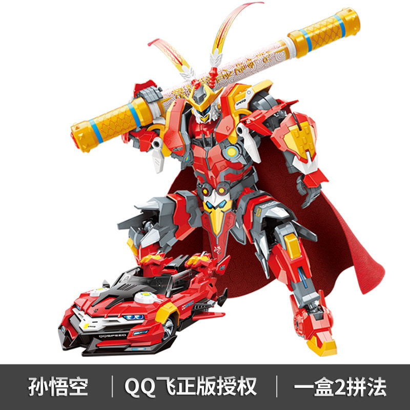 📚 新品启蒙积木QQ飞车手游雷诺孙悟空机甲益智拼装跑车模型儿童玩具