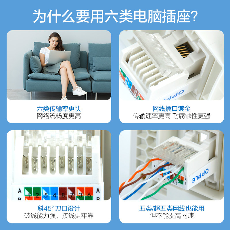 📚 欧普6六类网络面板电脑网口86型网线盒千兆单双口网插口悦歆插座G