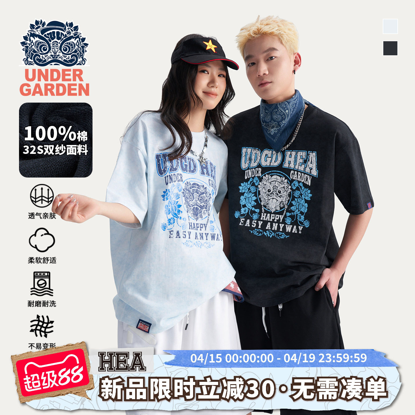 📚 HEA x i.t: UNDERGARDEN国潮醒狮纯棉做旧晕染短袖T恤男女情侣款