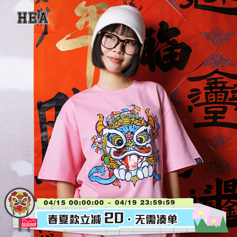 📚 HEA 经典国潮醒狮短袖T恤宽松透气舒适休闲百搭圆领男女同款西藏