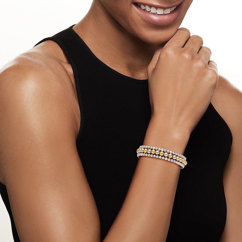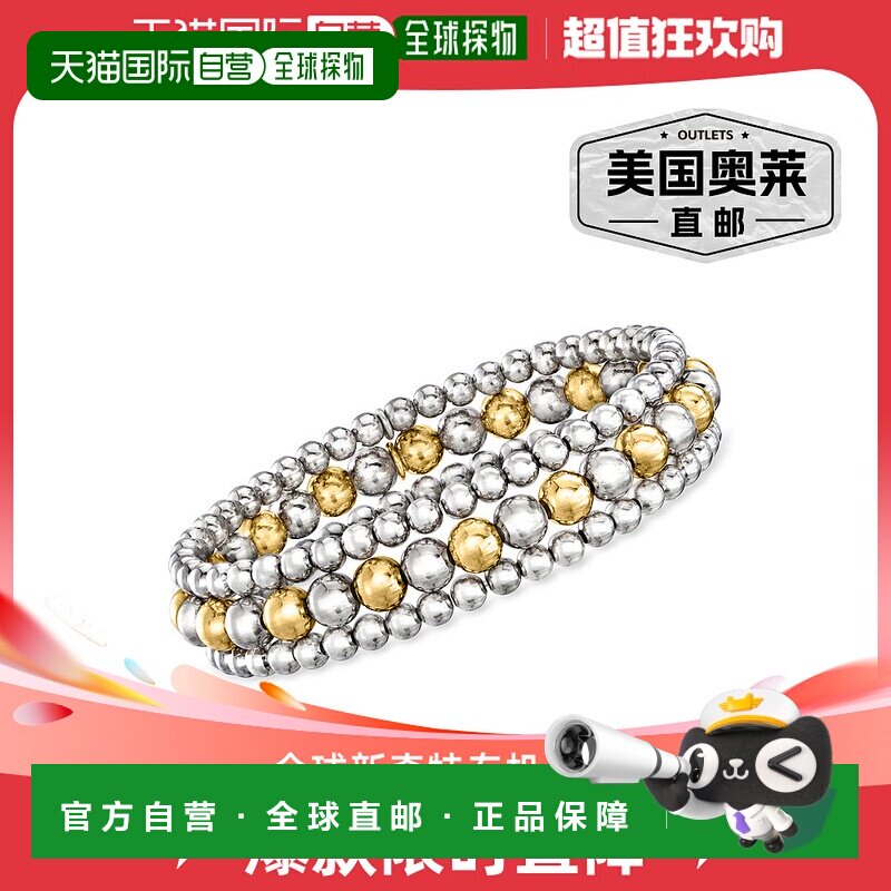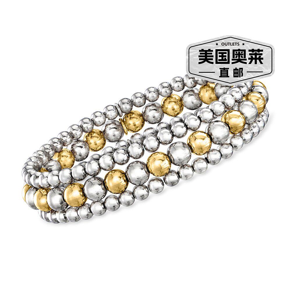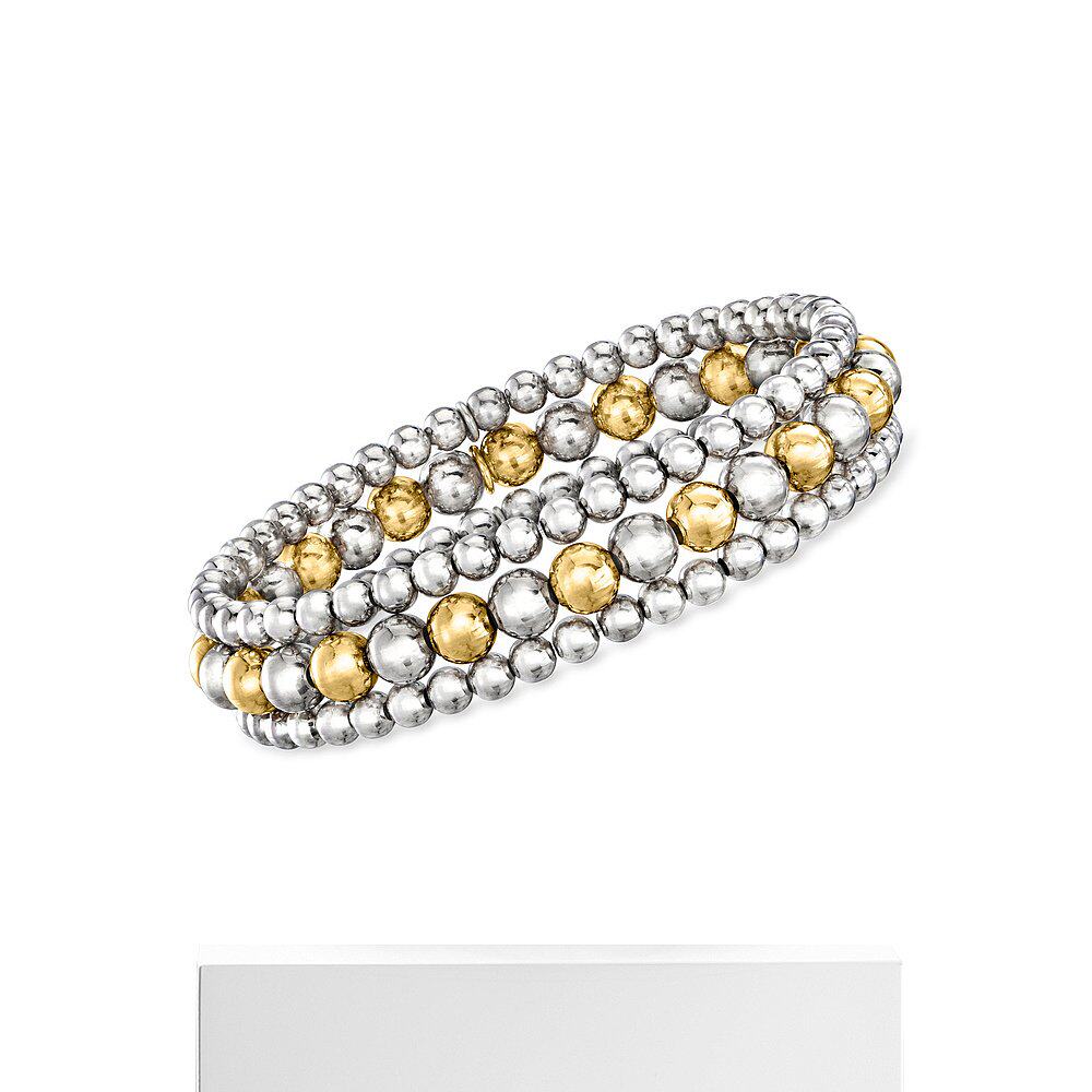 📚 Ross-Simons 意大利 2 色纯银珠宝套装:3 条 4-6 毫米珠弹力手链