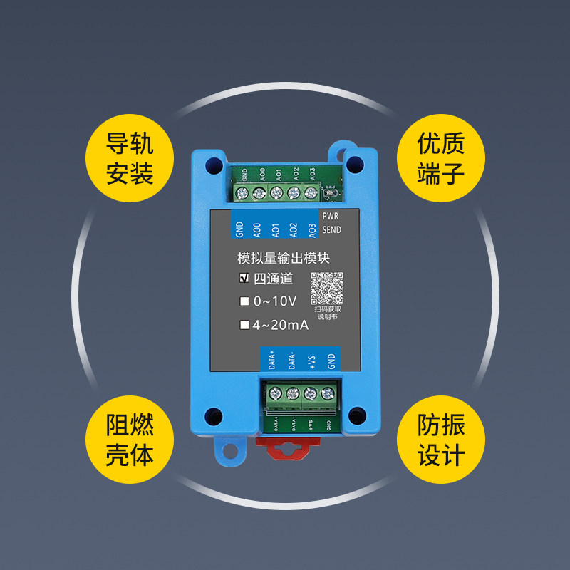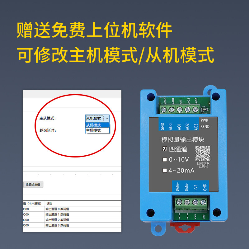 📚 主站RS485模拟量输出模块从站仪表转4-20mA10V串口扩展多路电流压