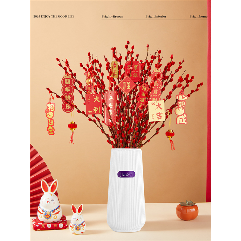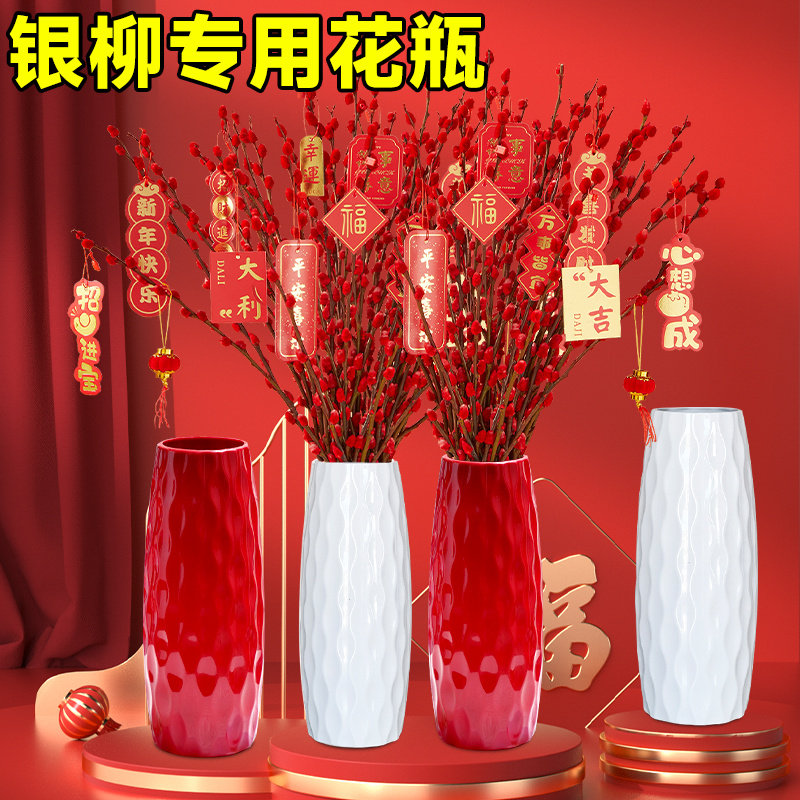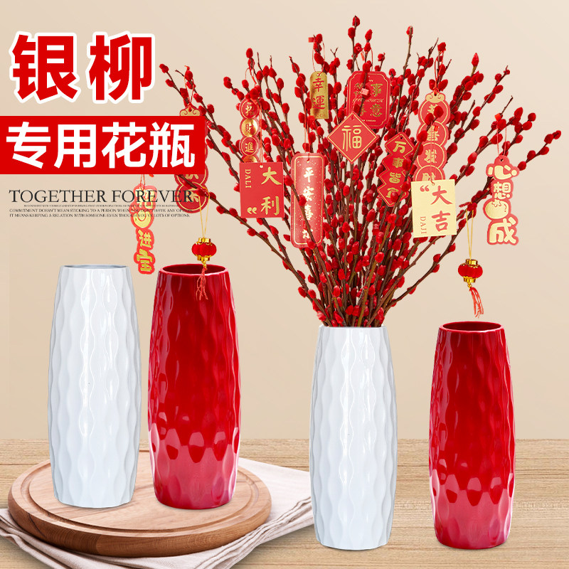 📚 银柳专用花瓶陶瓷真花鲜枝干花冬青年宵花塑料花瓶客厅落地插花瓶