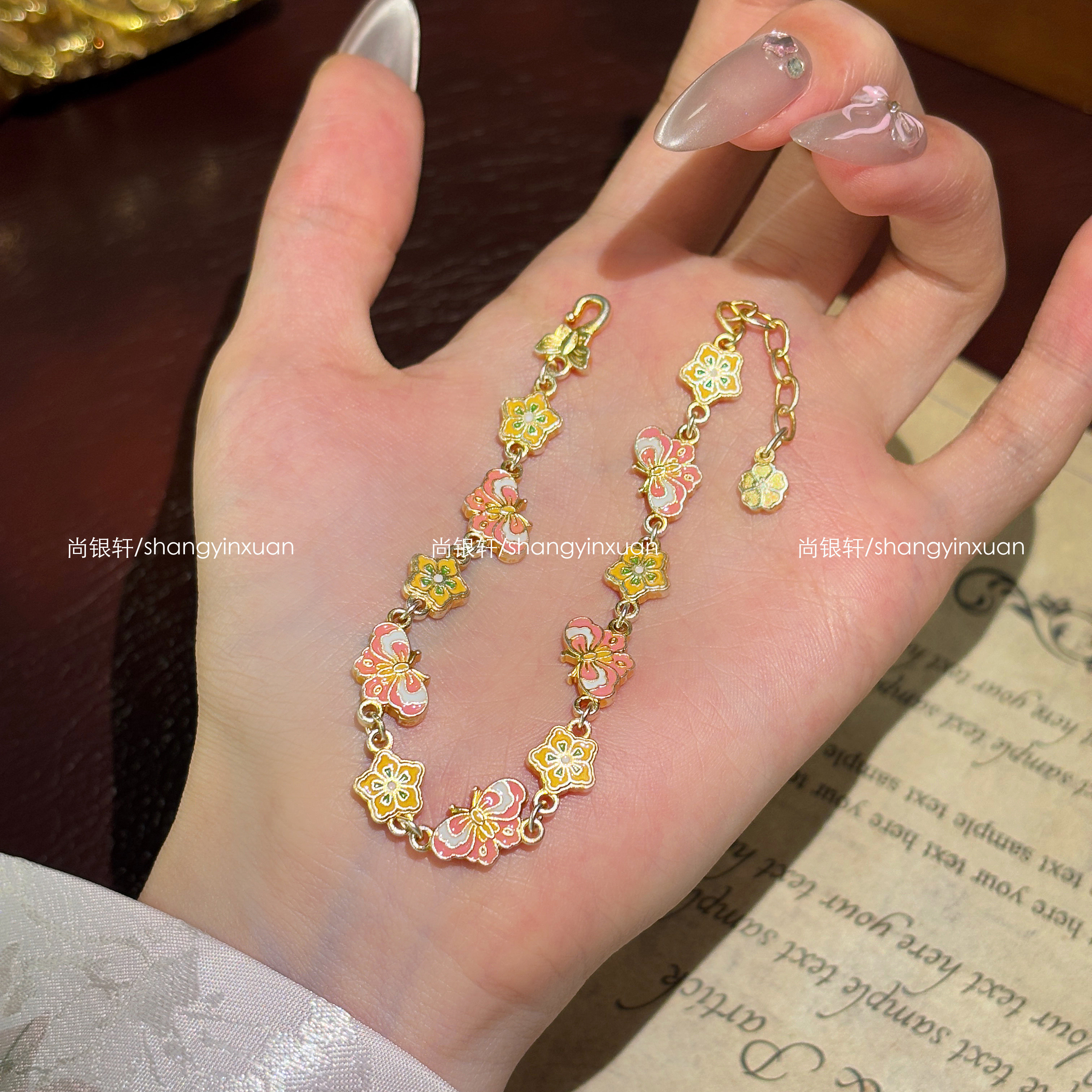 📚 尚银轩足银9999珐琅彩蝴蝶手链新中式纯银手链送女友送闺蜜