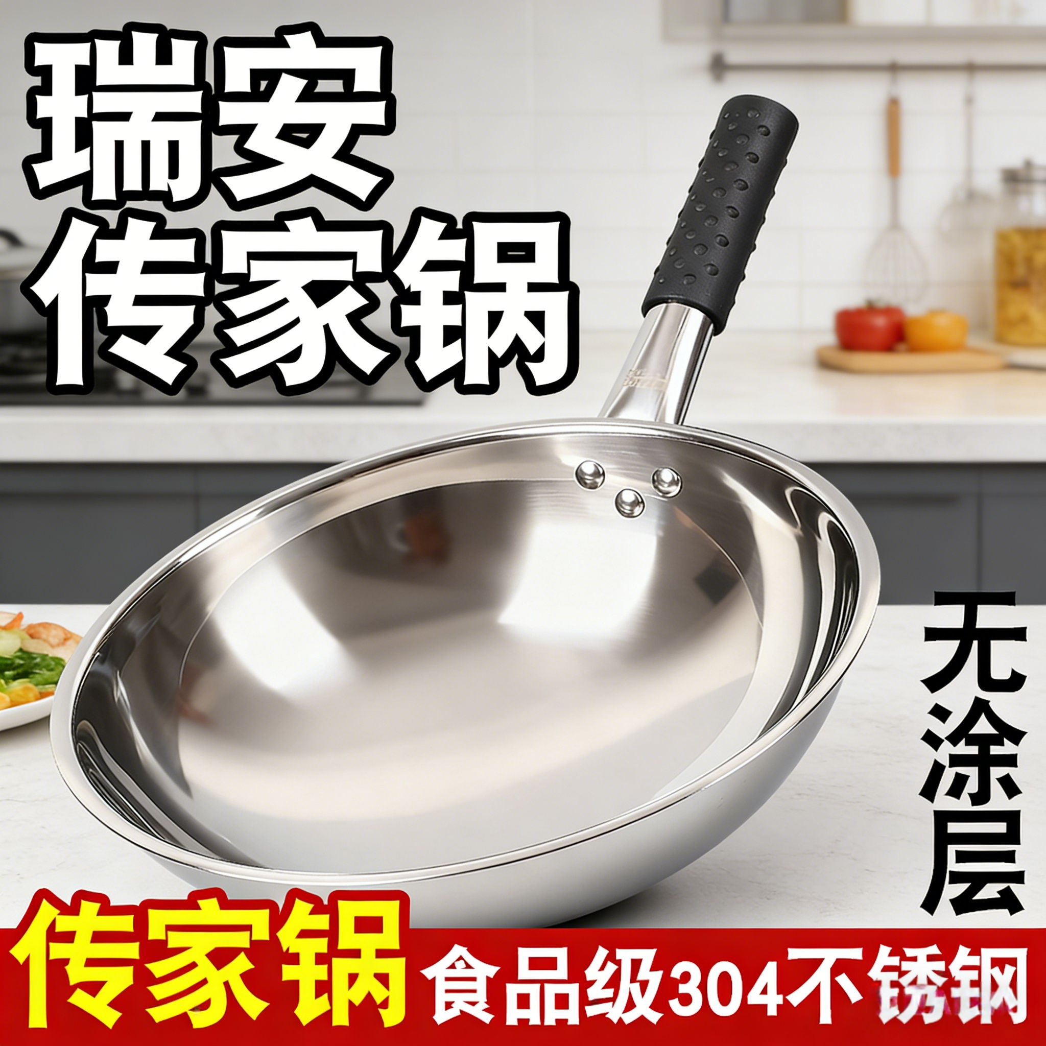 🔥揭秘瑞安传家锅!304不锈钢无涂层圆底不粘锅,家传耐用,券后价仅99💰