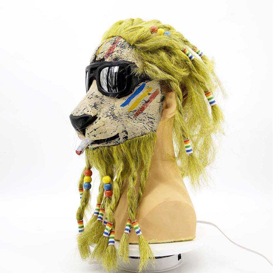 📚 万圣节直播头套成人愤怒的狮子头舞会派对动物乳胶墨镜狮子王面具