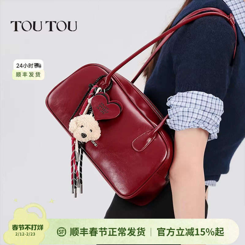 💥惊艳!新年的浪漫礼物,TOUTOU红色保龄球包大容量高级感腋下包,新娘结婚包首选👰