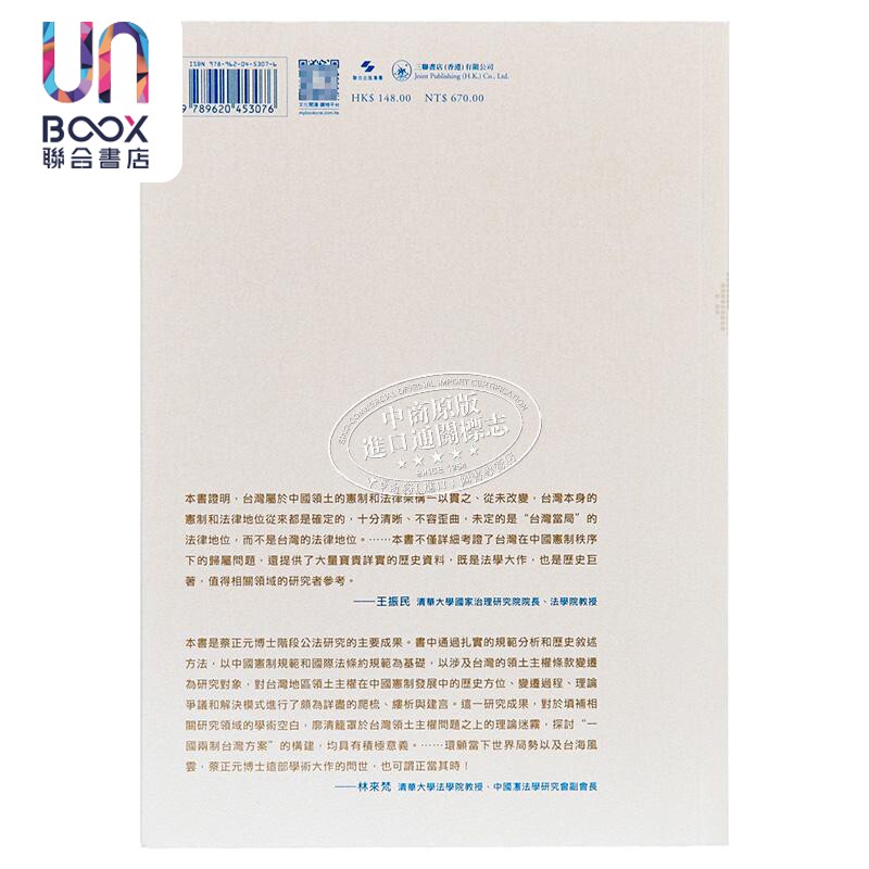 📚 预售 中国宪制规范下台湾的领土主权问题 港台原版 蔡正元 香港三联书店