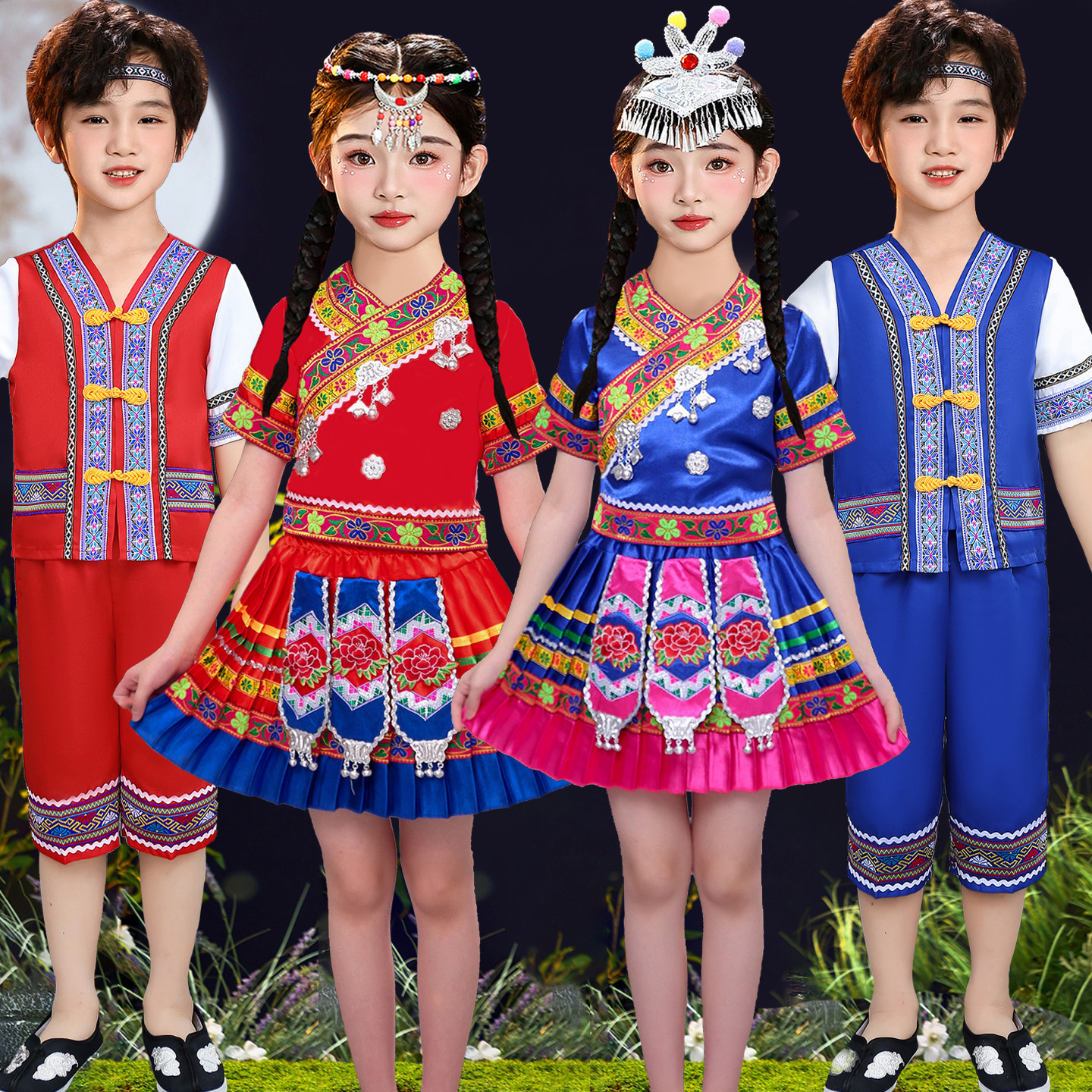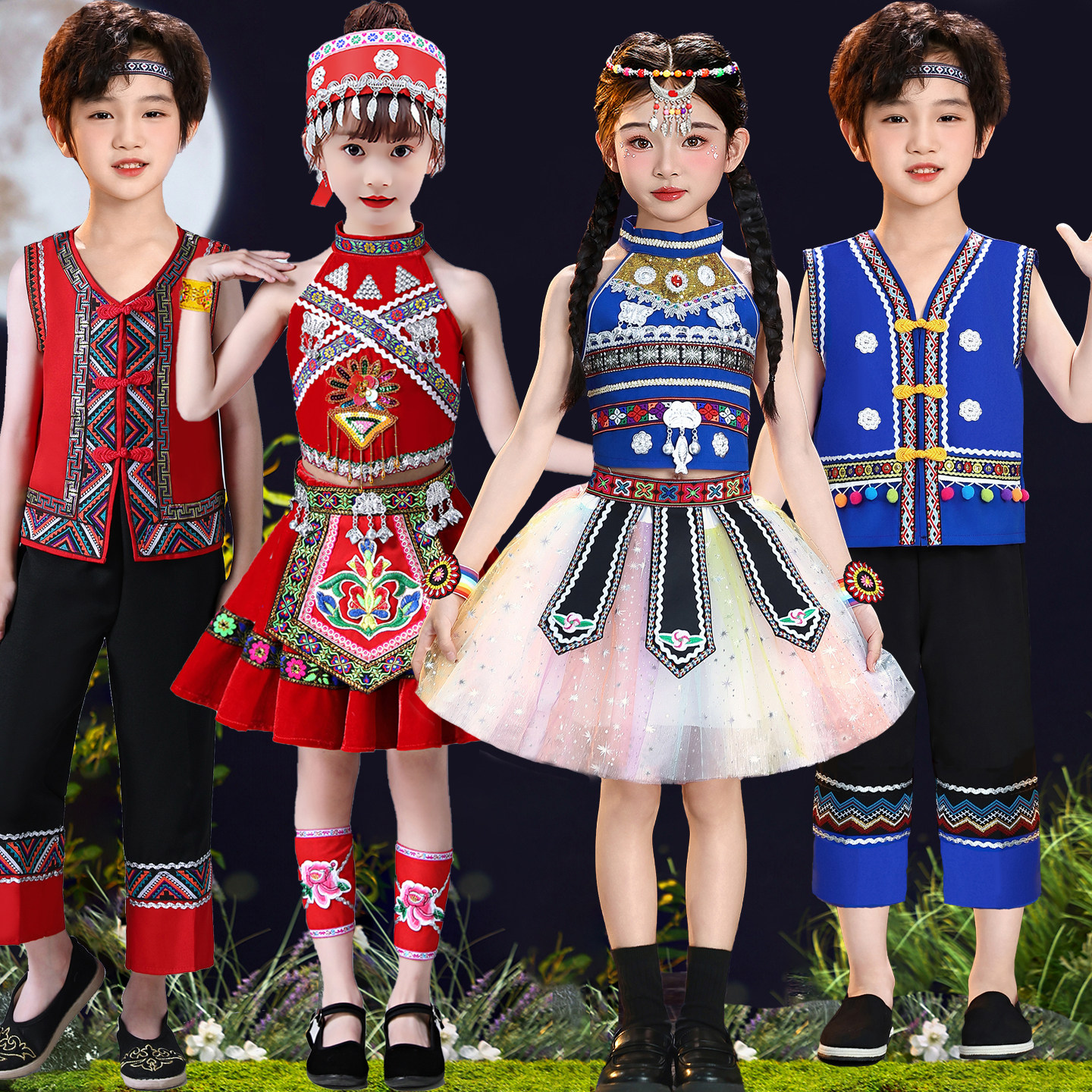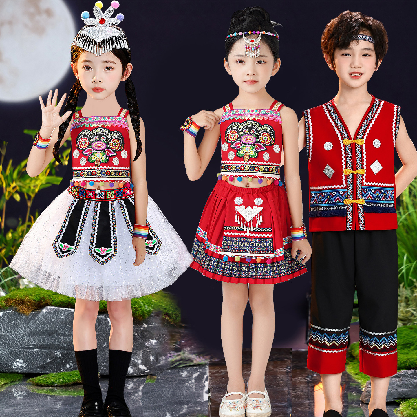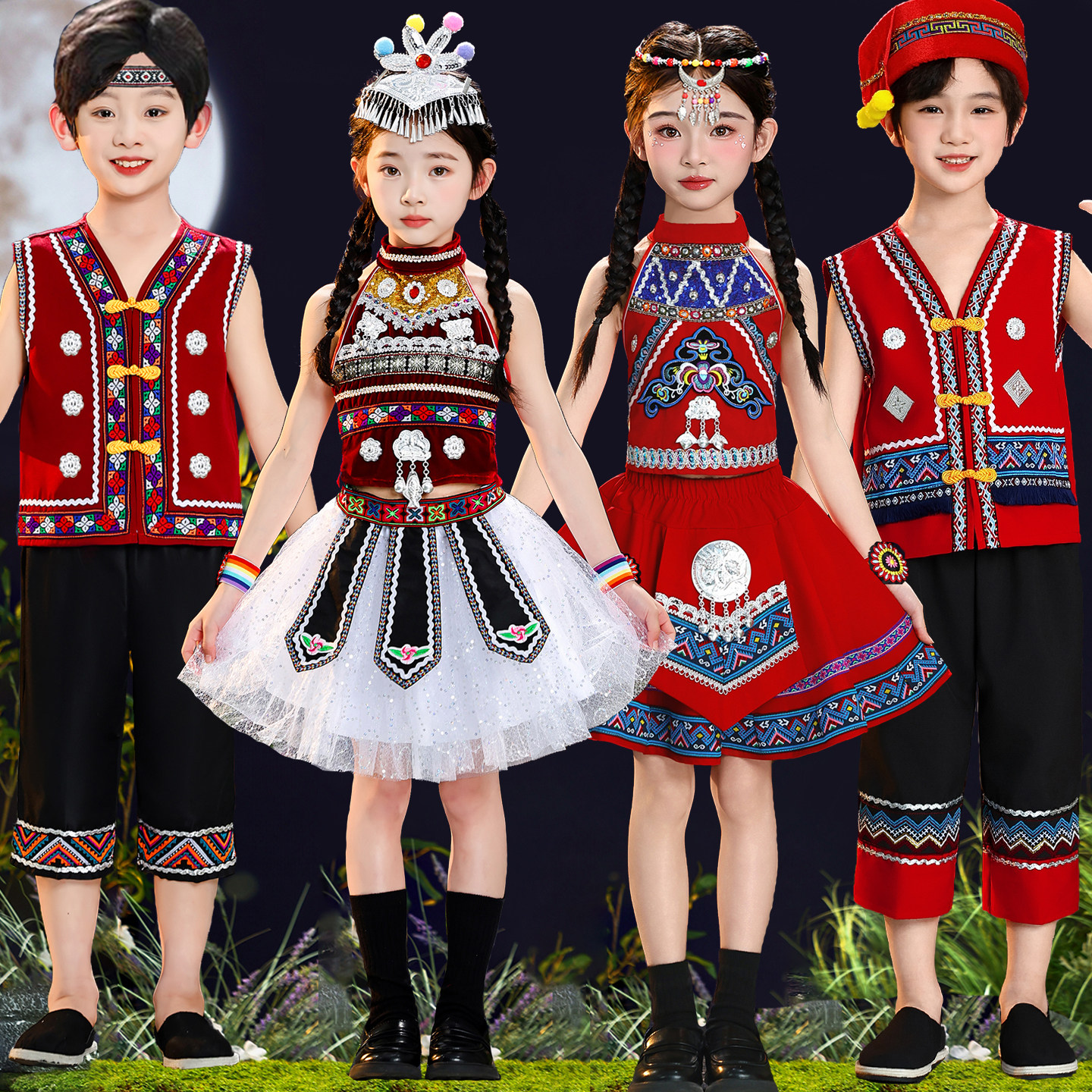 📚 六一少数民服装儿童苗族彝族瑶族哈尼土家族幼儿舞蹈竹竿舞演出服