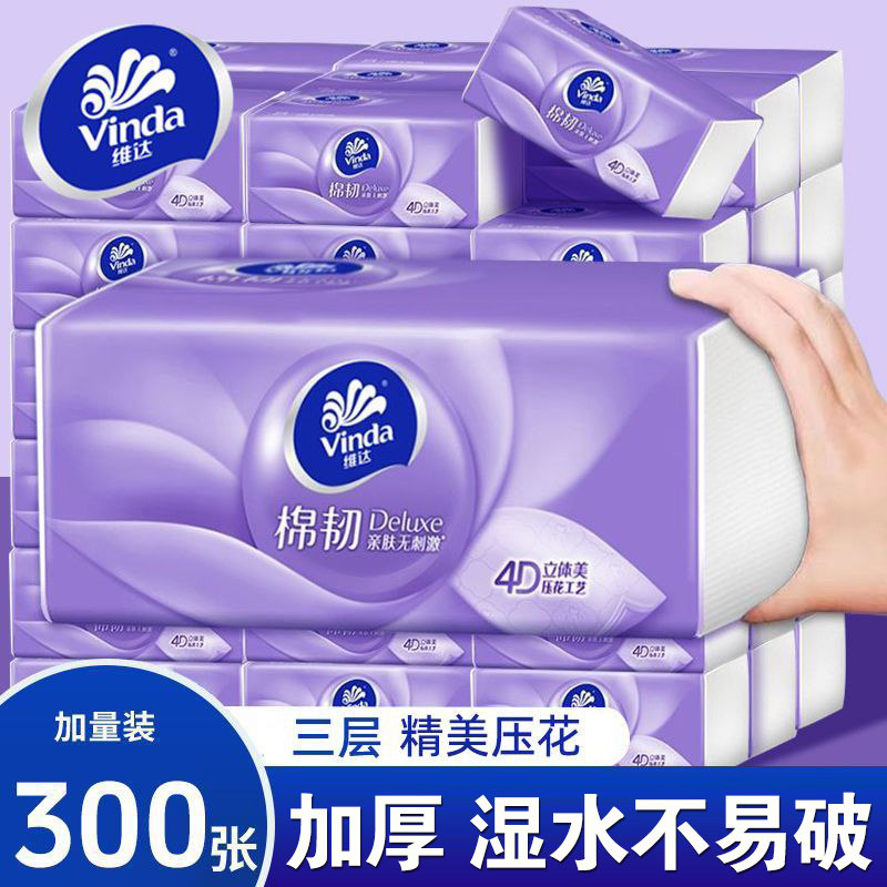 📚 维达抽纸立体美压花3层100抽整箱24包家用实惠装大包卫生纸擦手纸