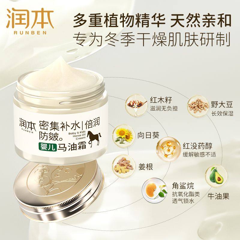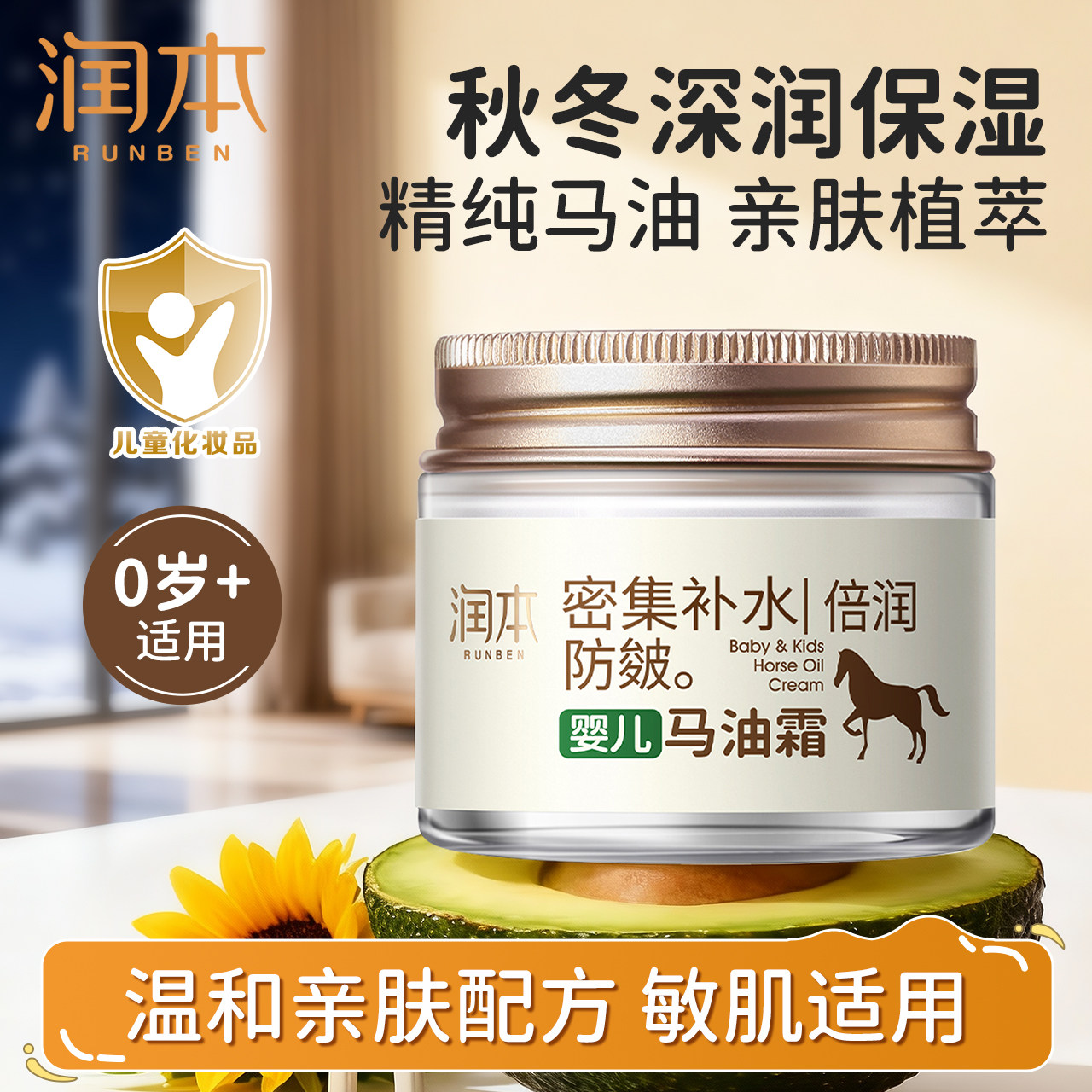 📚 润本婴儿马油面霜宝宝擦脸油儿童秋冬防皴滋润保湿男女童润肤乳