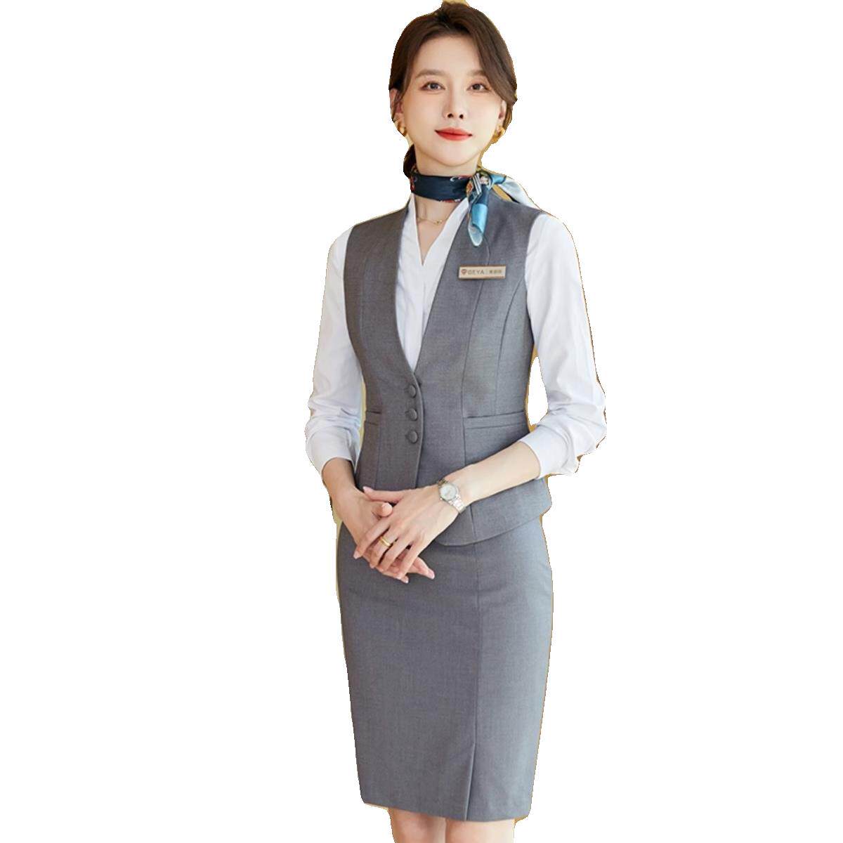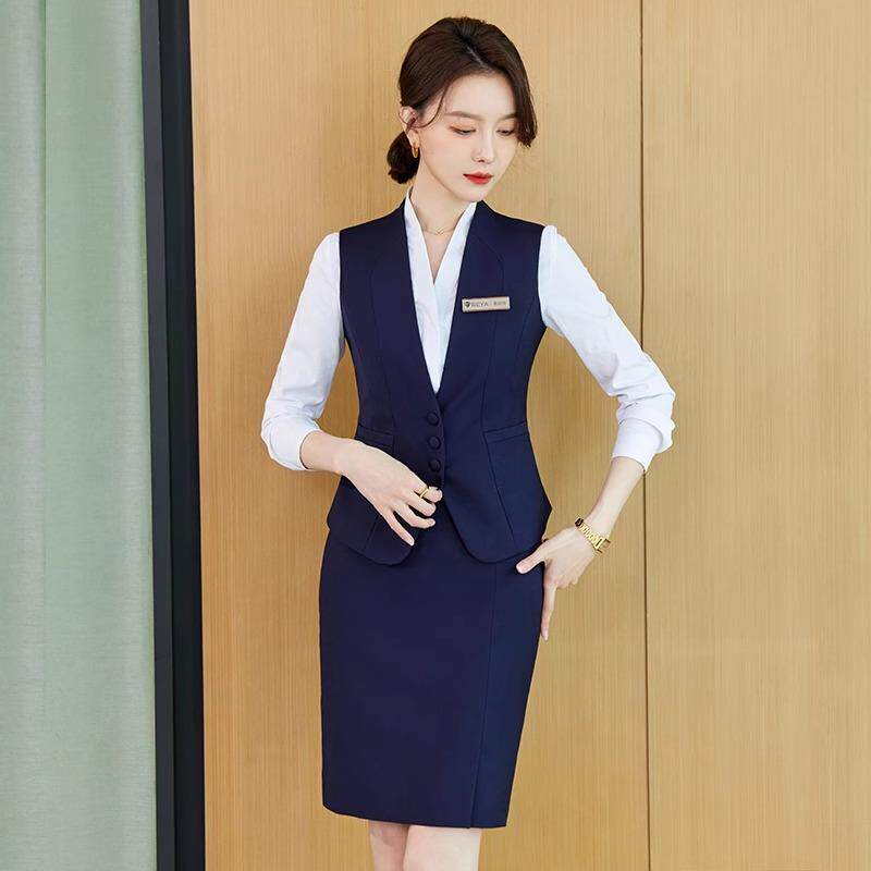 📚 女士珠宝店职业西装马甲套装女春秋气质酒店前台经理工作服三件套