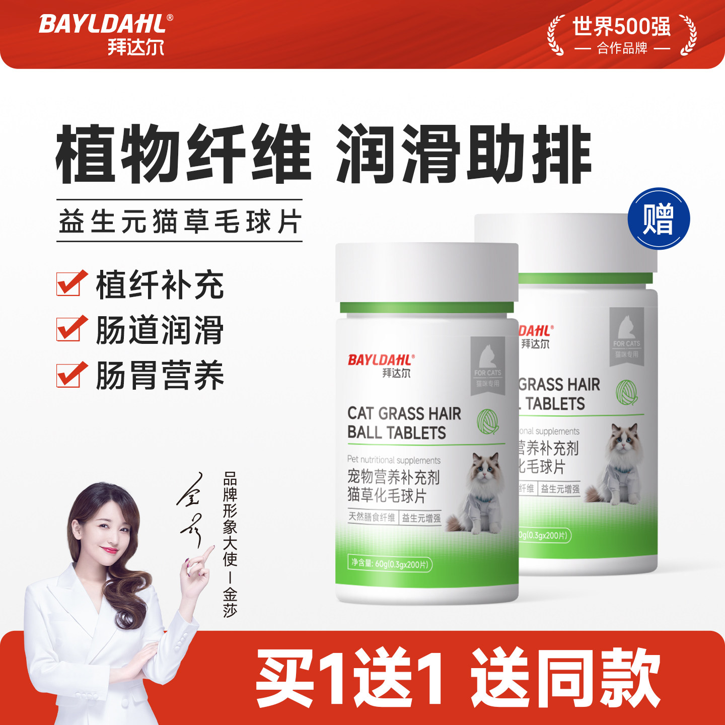 📚 拜达尔猫草片高效温和排毛吐毛球猫调理肠胃猫草化毛球片猫咪专用