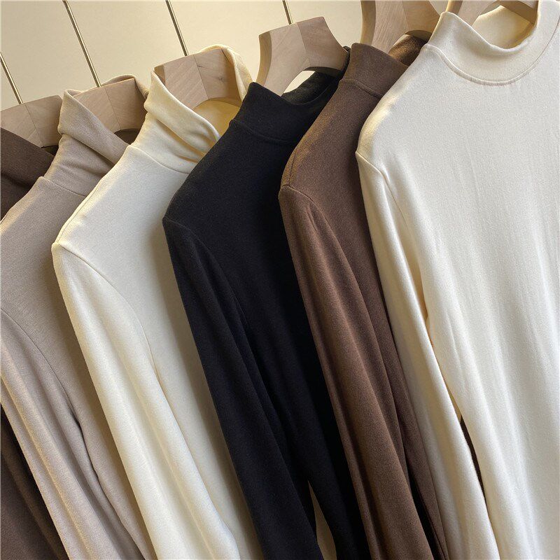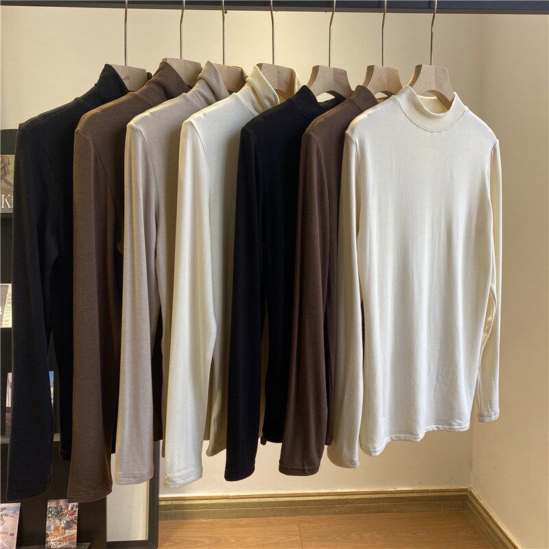 📚 冬日里的暖阳!羊毛肤感纱打底衫细腻面料贴合肌肤简约打底衫女