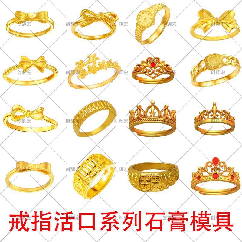 📚 皇冠戒指黄金金银首饰加工石膏模具镂空开口女戒小克重倒模模具