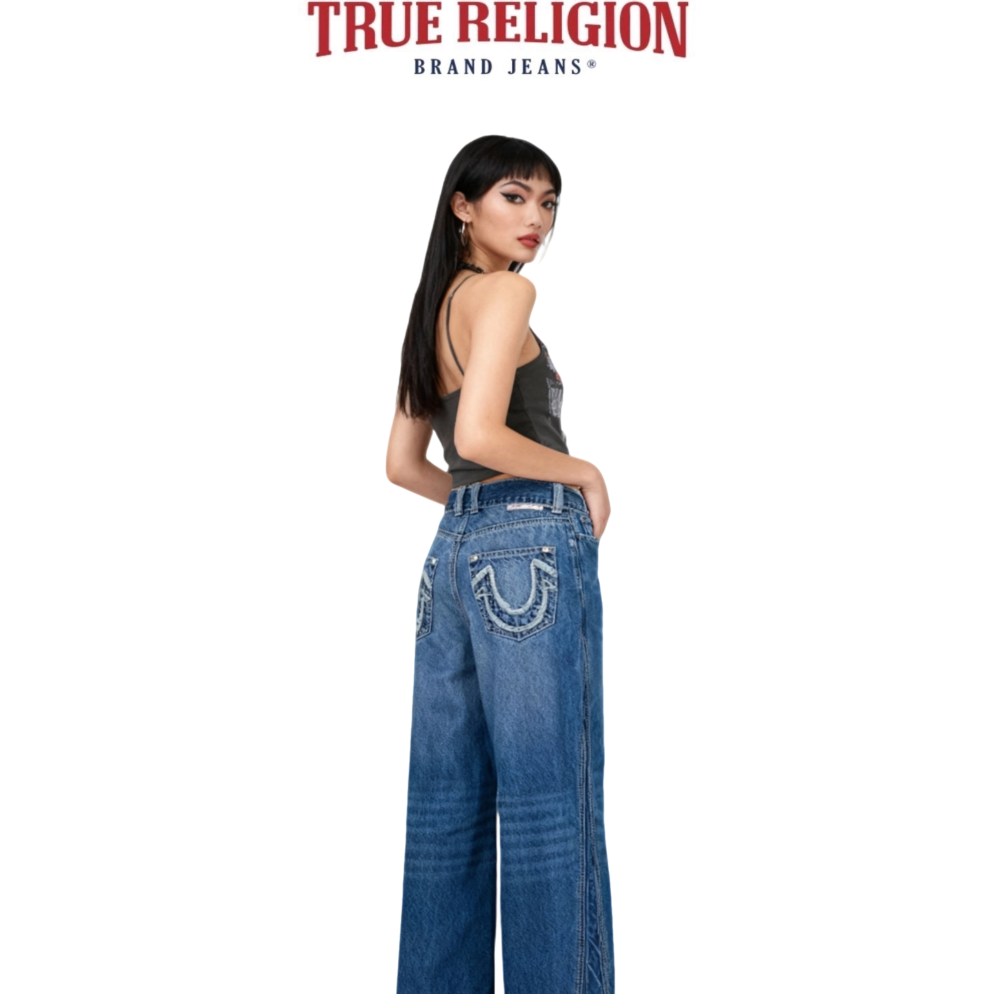 📚 True Religion春季新品女士潮流时尚百搭宽松直筒牛仔长裤