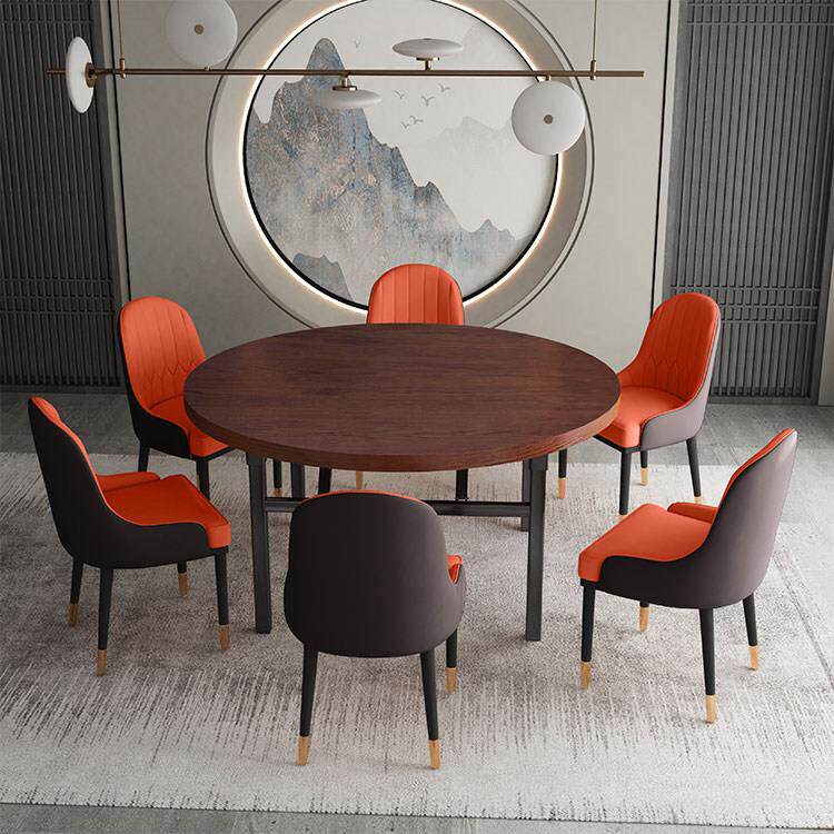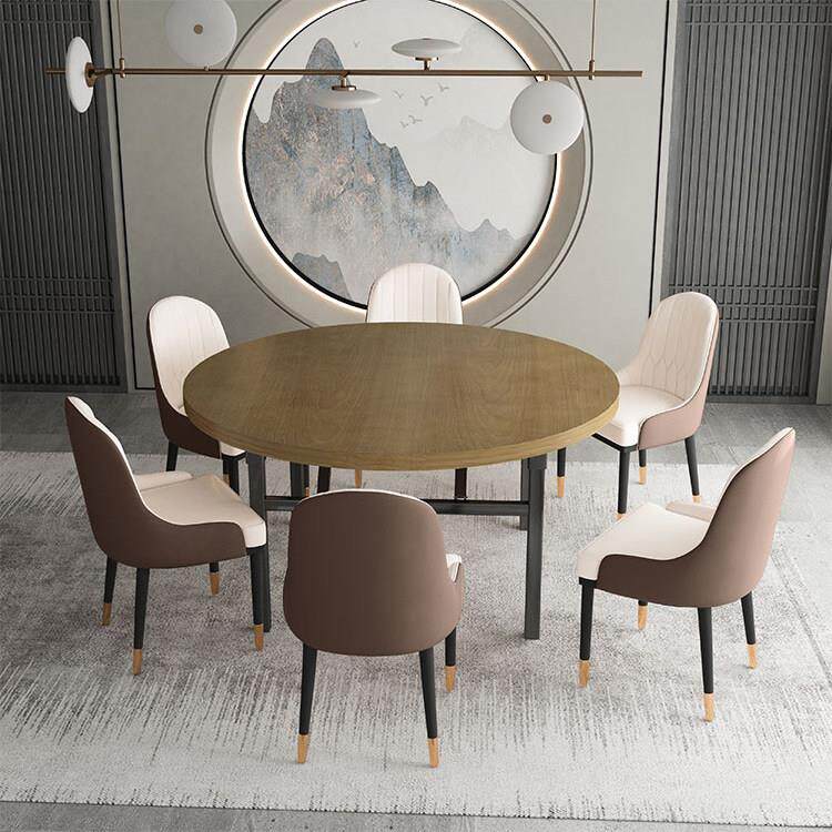 📚 实木圆桌餐桌商用饭店酒店食堂餐饮家用聚会圆形桌子转盘加厚折叠