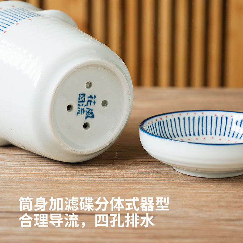 📚 西田木雨 渔火 日式陶瓷筷子筒厨房家用沥水筷筒存放架筷笼 包邮