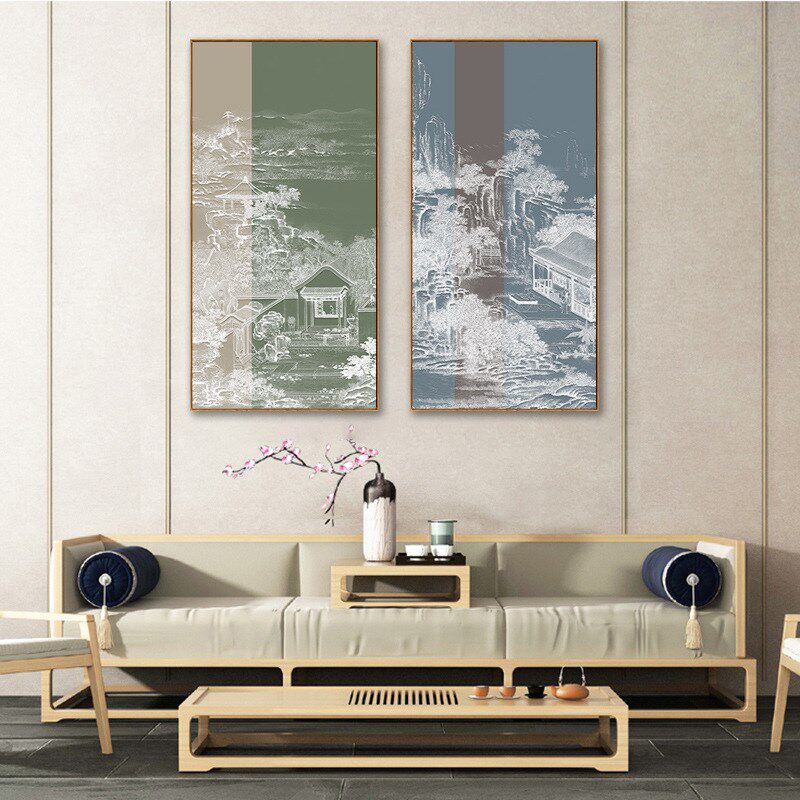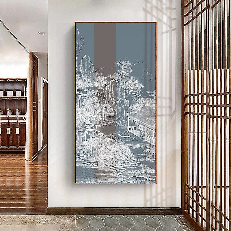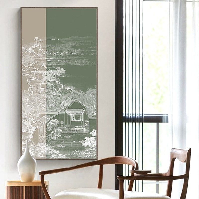 📚 亭台楼阁 新中式中国风建筑进门玄关装饰画走廊过道挂画竖版壁画