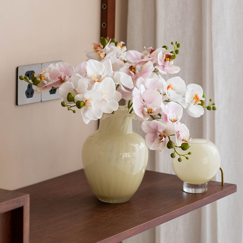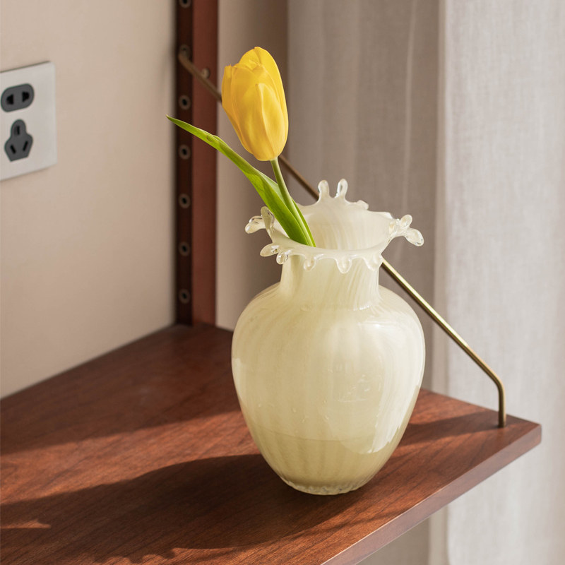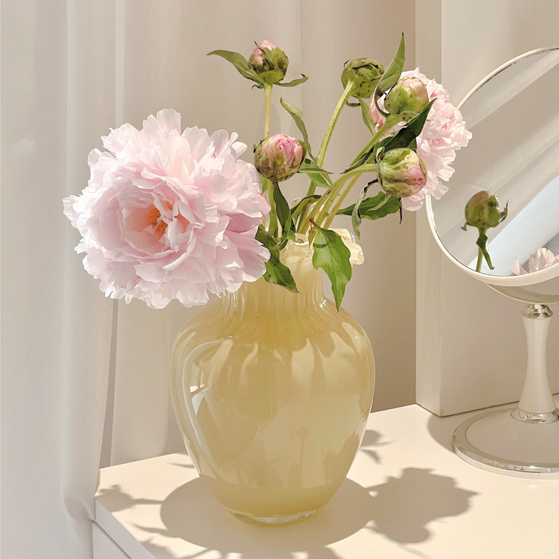 📚 中古芬顿花瓶高级感插花玻璃奶玉色摆件法式客厅餐桌水养插花花器