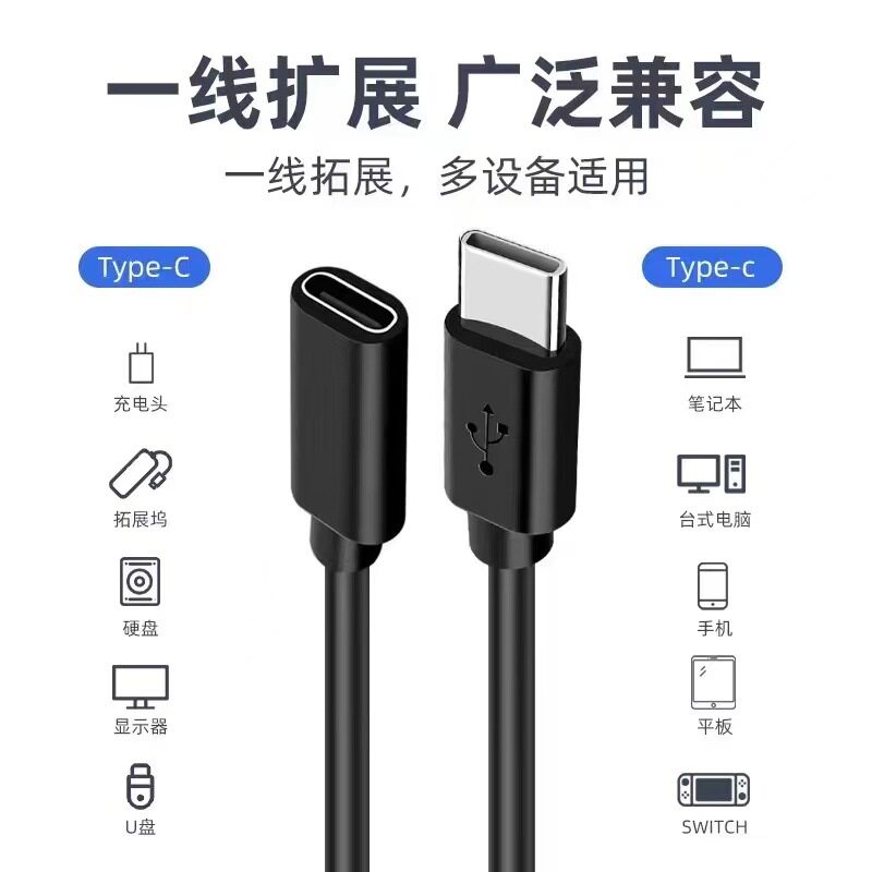 📚 USB Typec母对公充电数据线延长线USB转Type-C手机转接延长数据线