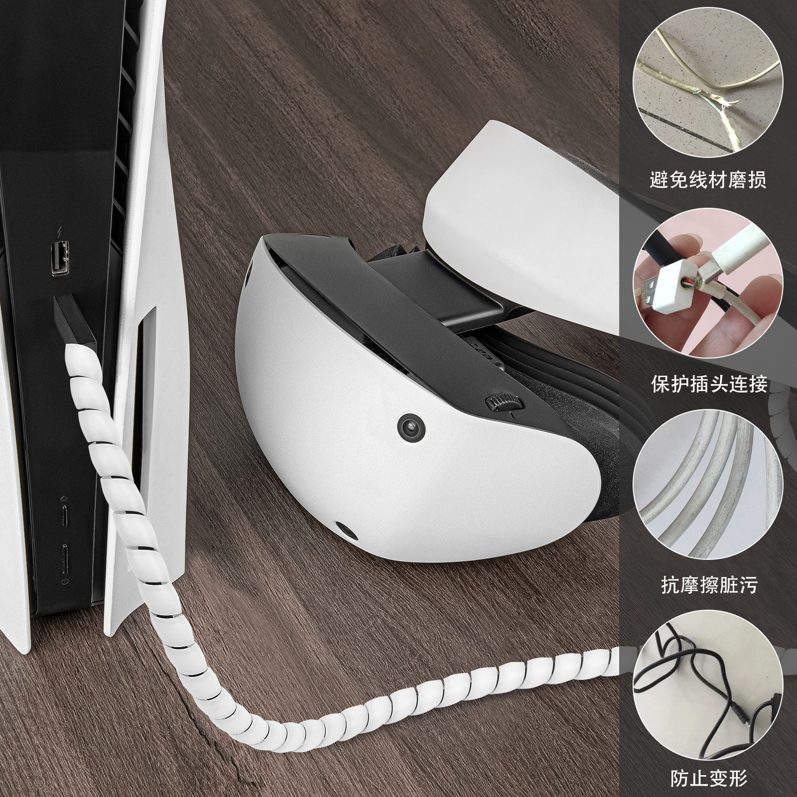 📚 Geekri极客悦耳适用PSVR2防磨损防宠物磨牙螺旋线束保护套5米