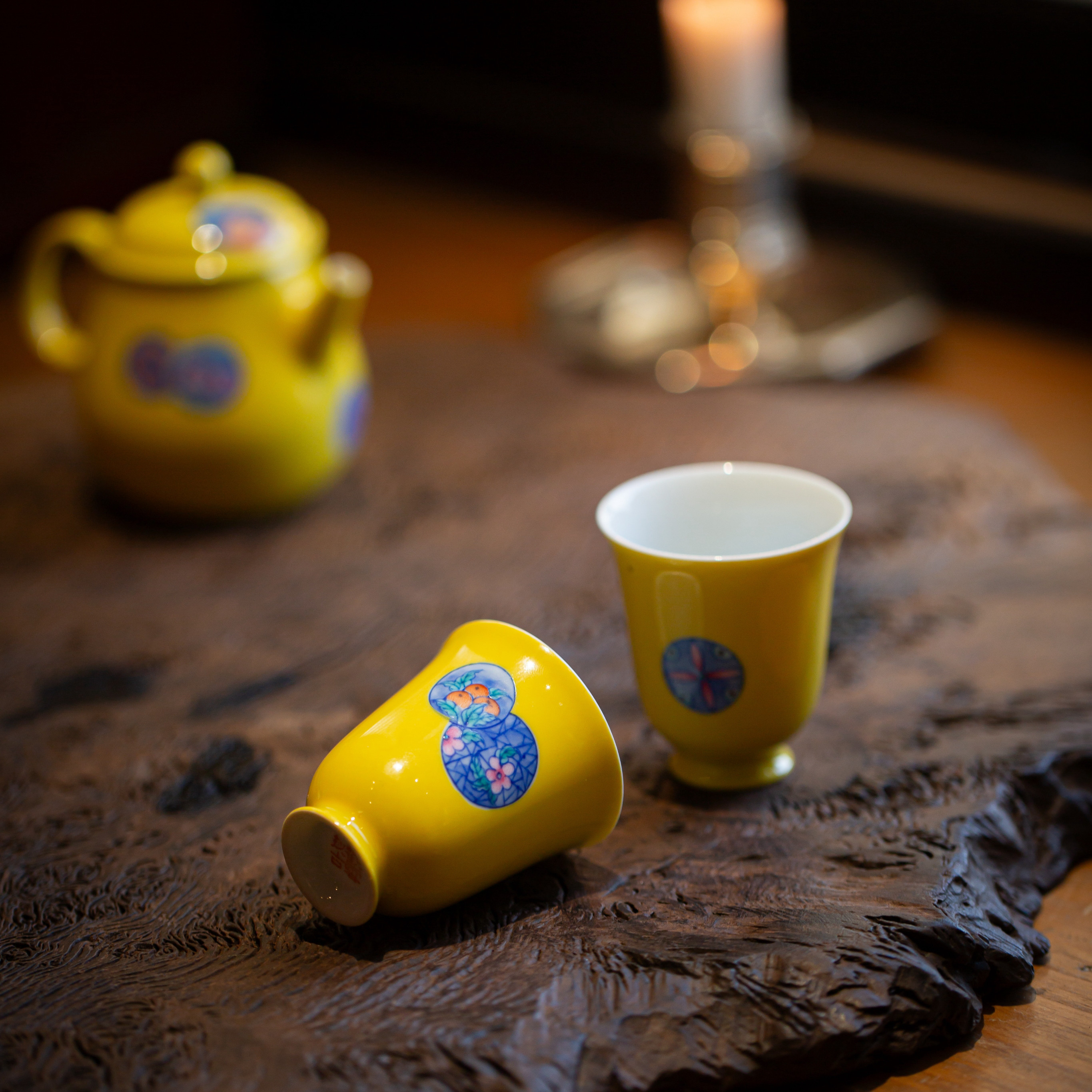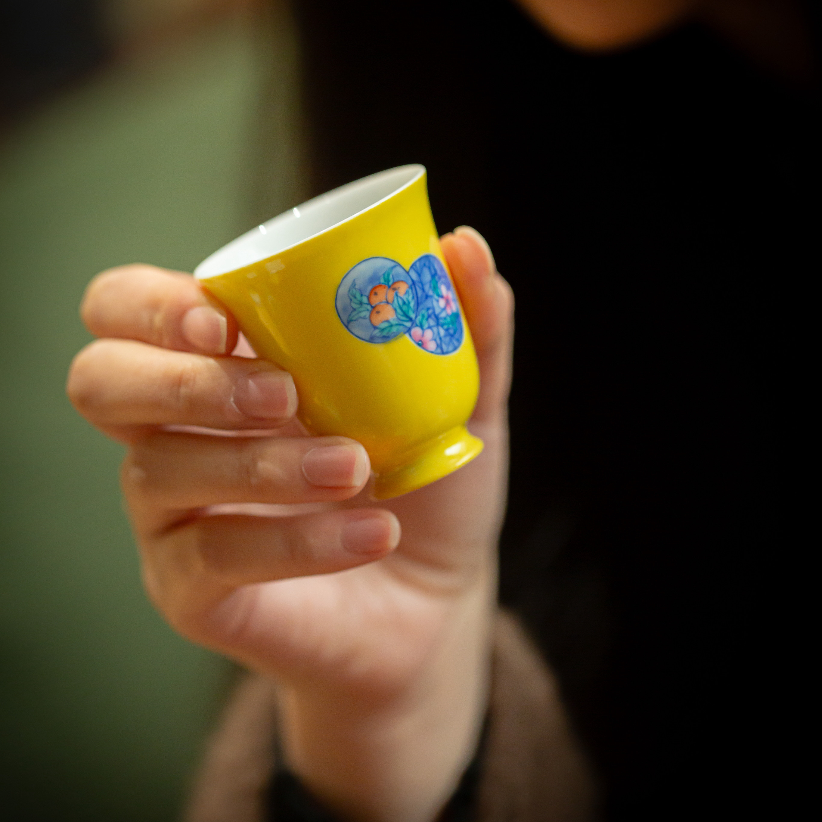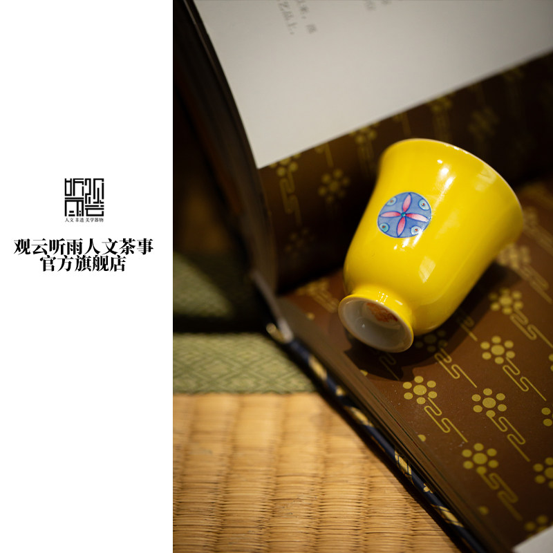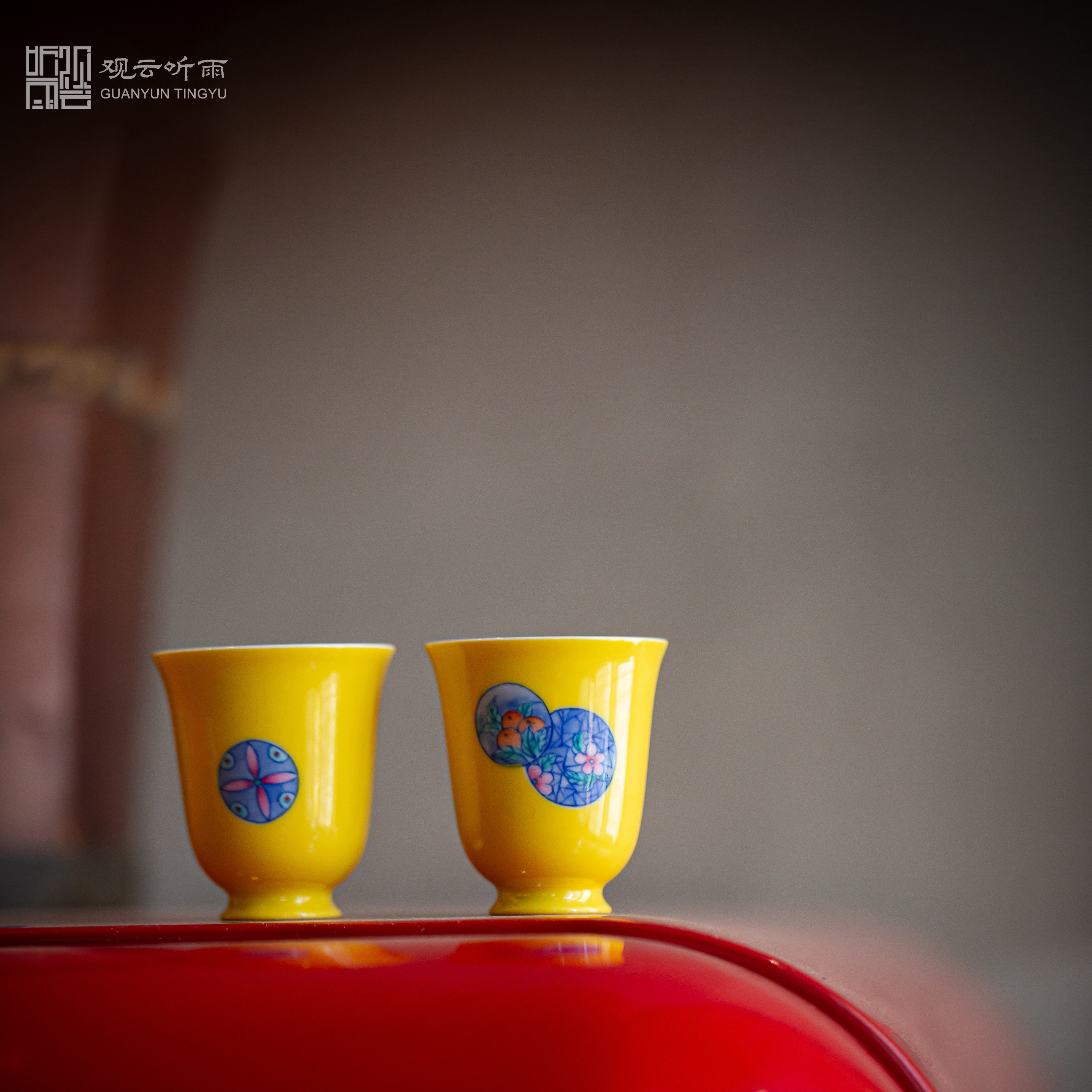 📚 景德镇观云听雨观云拟古黄地皮球花闻香杯