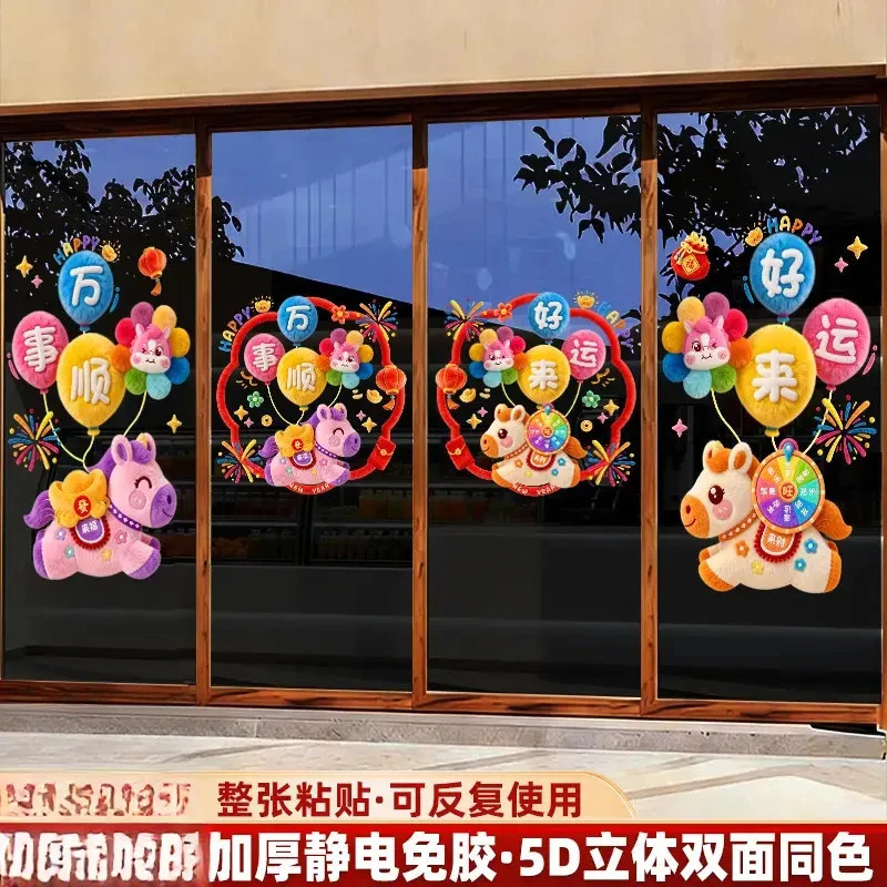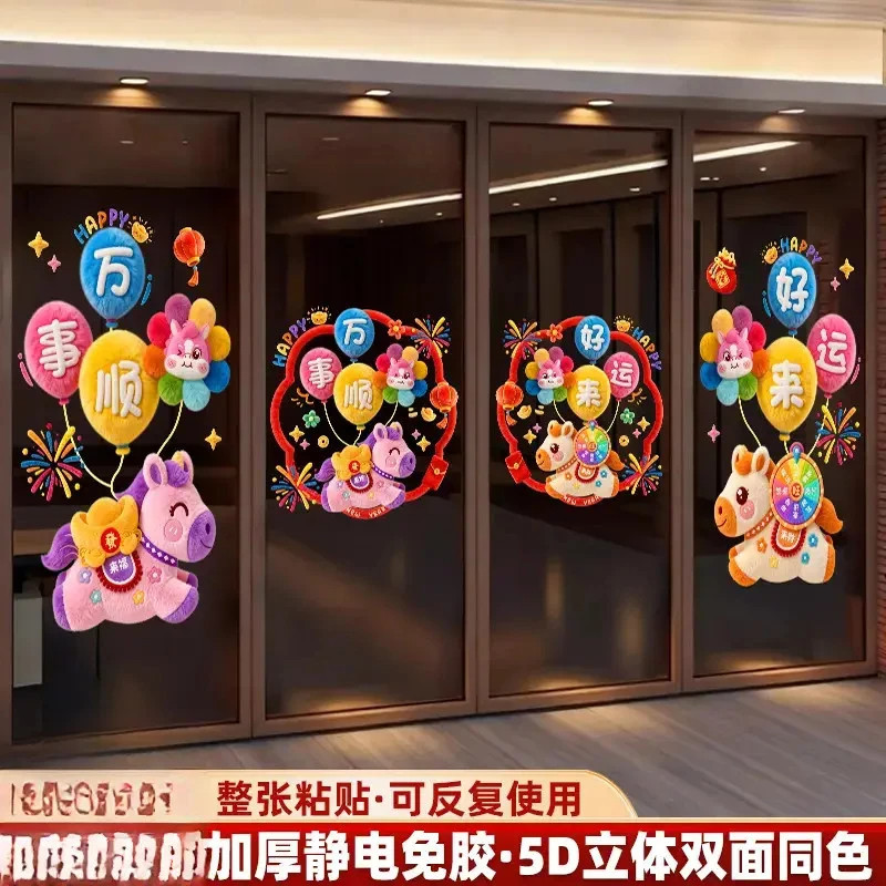 📚 【下单立减20】2026马年贴纸5D立体仿毛绒玻璃静电贴新年窗花