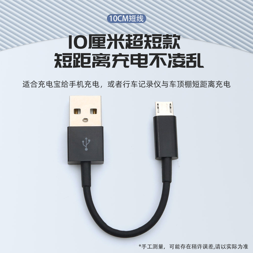 📚 安卓Micro USB接口数据线10厘米超短充电宝移动电源短款充电线行车记录仪车载电源线车顶棚rec供电线汽车用
