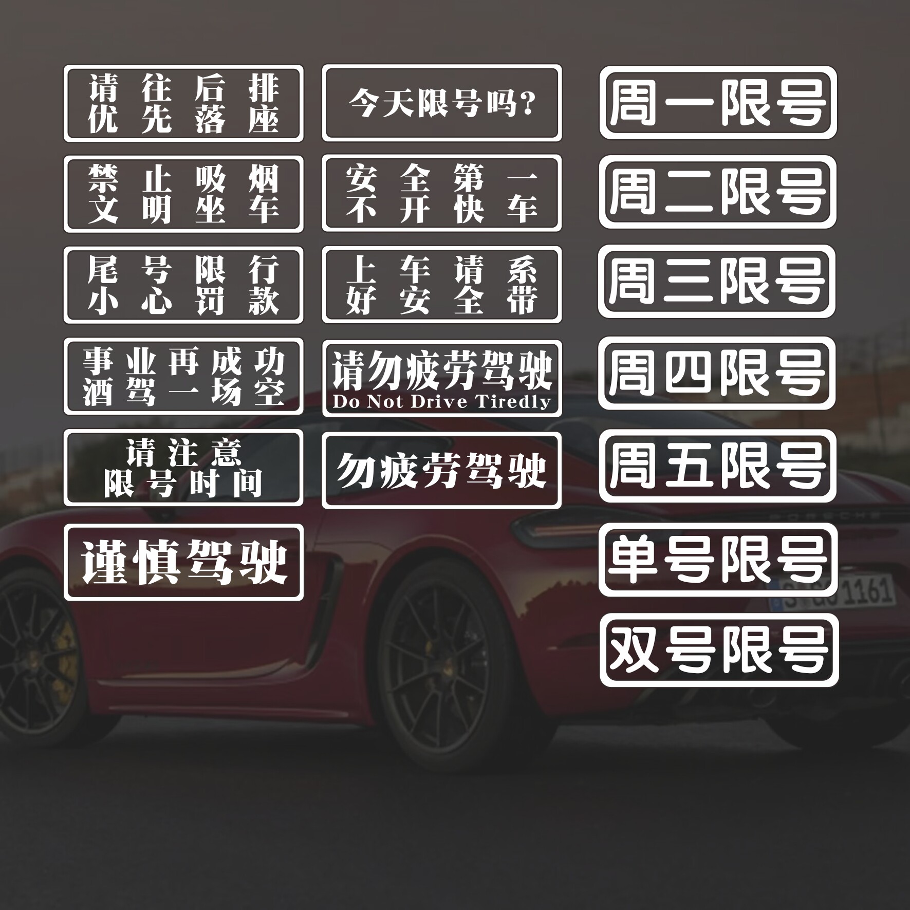 📚 星期周一周二周三周四周五限号车贴定制汽车提醒提示行牌车辆神器
