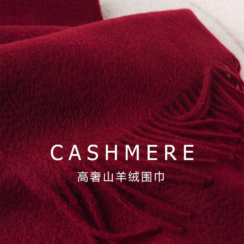 📚 高端红色羊绒围巾女100纯羊绒冬季安可拉红马年围脖本命年送妈妈