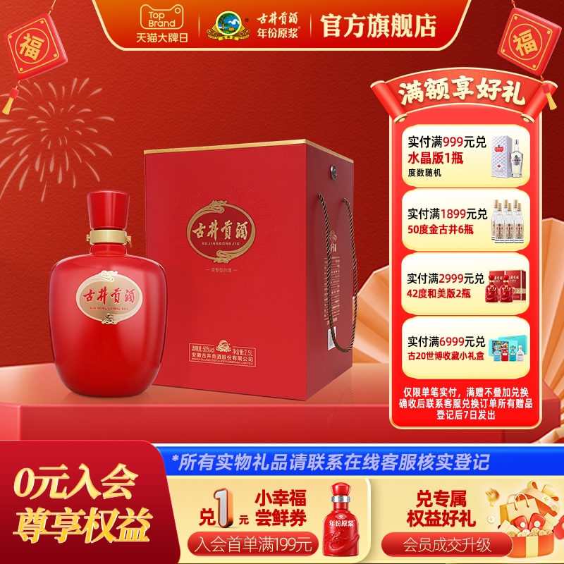 📚 【官方直营】古井贡酒 红大坛 50度2.5L 坛装白酒 送爸爸老丈人