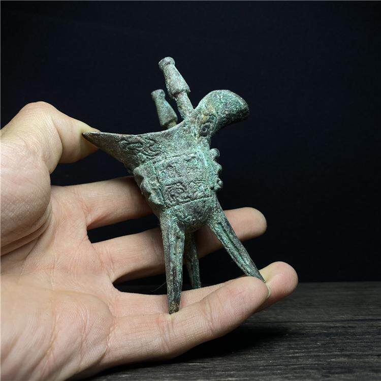 📚 古董收藏青铜酒樽仿古做旧古代宫廷酒杯铜爵杯帝王杯青铜器父辛爵